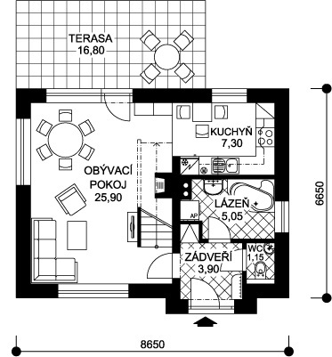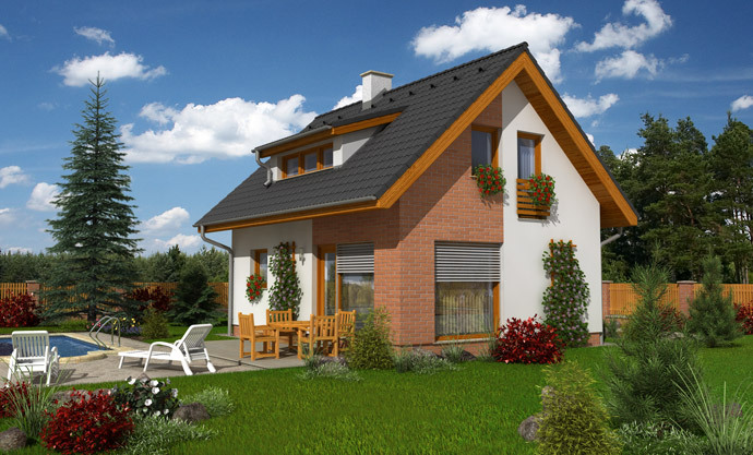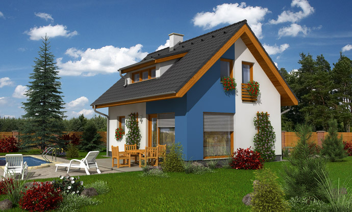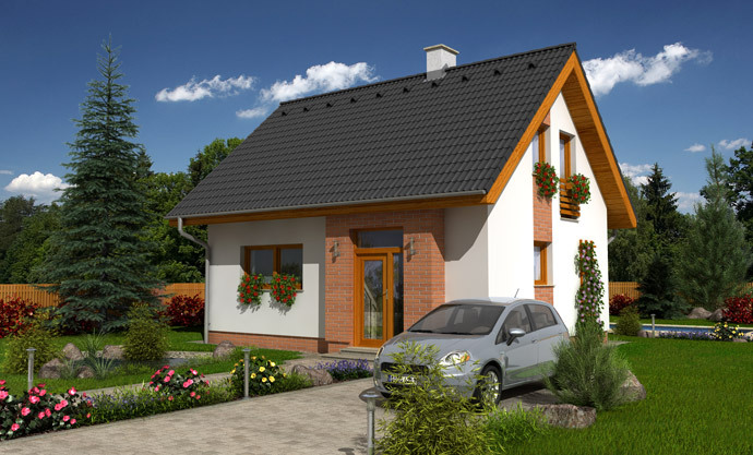 Jednoduchý dům se sedlovou střechou dobře zapadne do malého města nebo na venkov. Nabízí úsporné bydlení pro až čtyřčlennou rodinu. Výh... odou je velmi malá zastavěná plocha – postačí malý pozemek – a nízká cena. Rubovou stránkou věci je skromné zázemí.