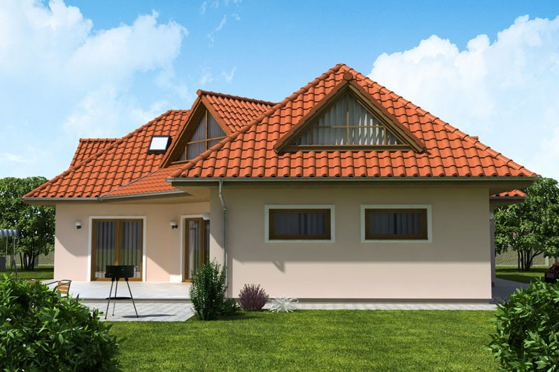 Velkoryse řešený dvoupodlažní dům, který nabídne krásný prostor pro celou rodinu. Svým půdorysným tvarem připomíná písmeno L. Tím je dosaženo utvoření klidného prostoru pro terasu. Velká okna obytných místností a pracovny v 1. NP mohou být orientována na tuto klidnou terasu. Podkroví pak nabídne prostor pro dva velké dětské pokoje, koupelnu, oddělené WC a ložnici se samostatnou koupelnou a šatnou.