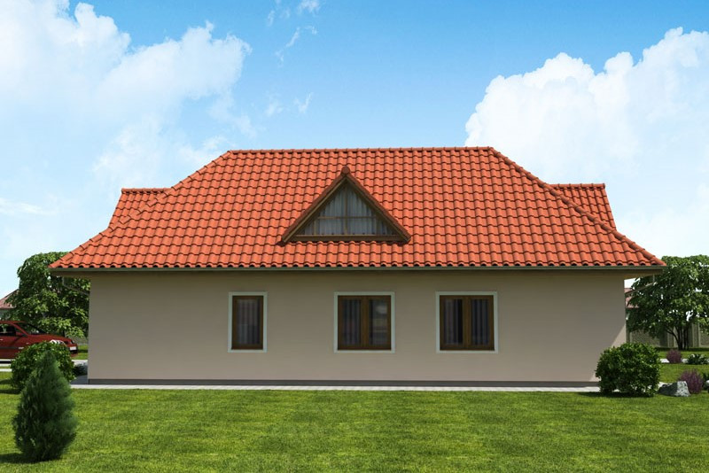 Dům postavený ve volné krajině elegantně spojuje tradiční tvar venkovského stavení s moderním designem. Má společnou obývací část v přízemí a ložnice v podkroví. Díky zvýšené nadezdívce je i pod šikmými stropy dost místa a velká okna dávají hodně světla. Odolná konstrukce z tvárnic