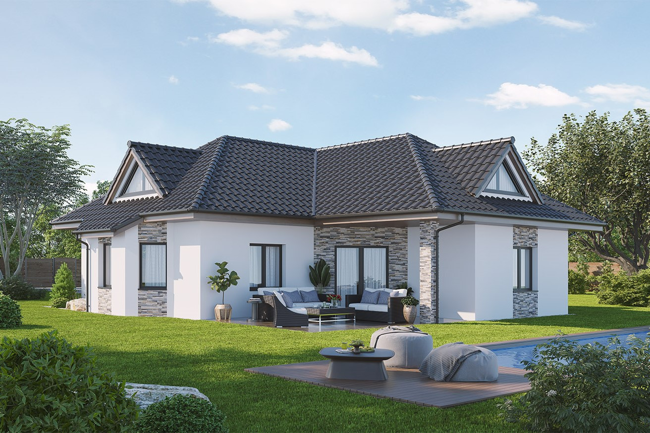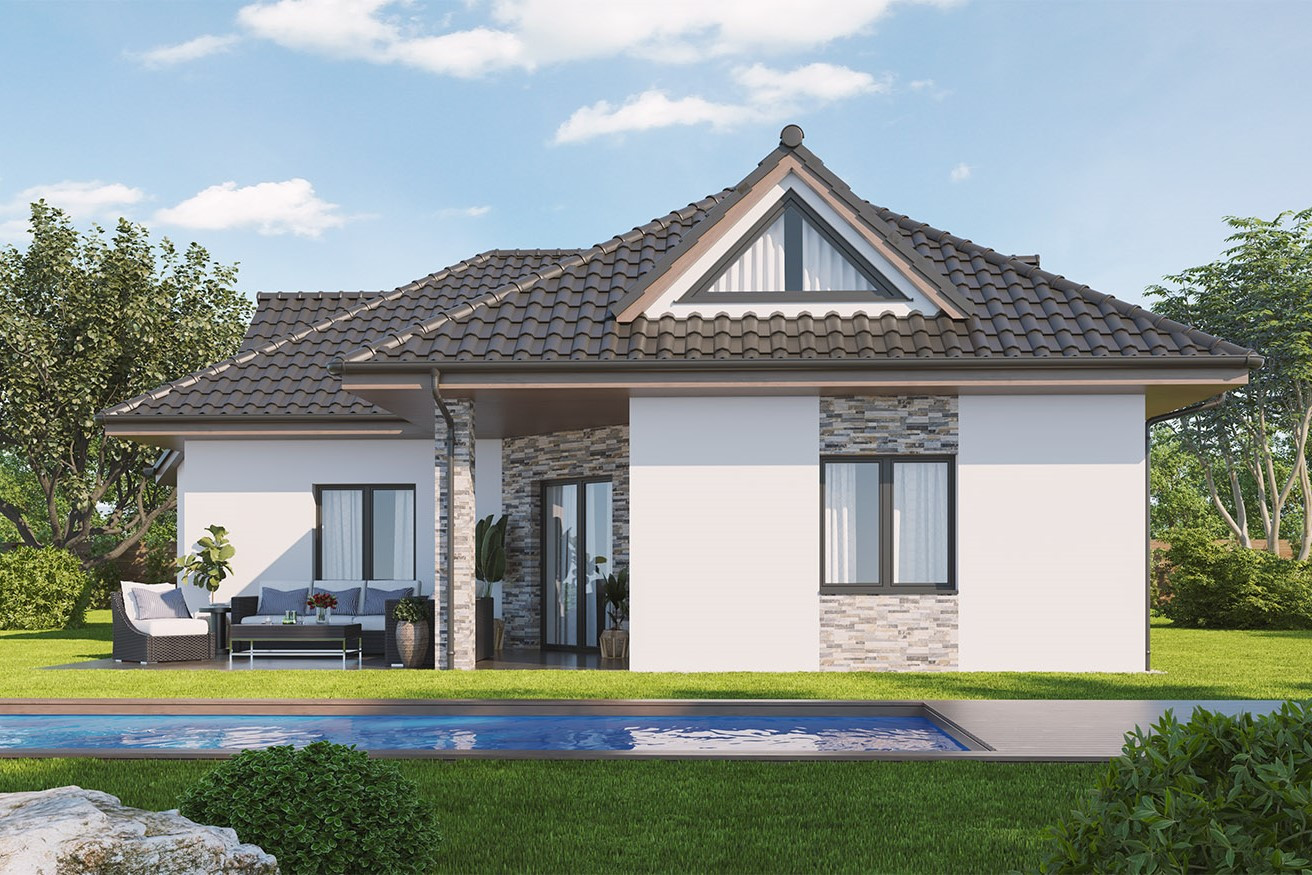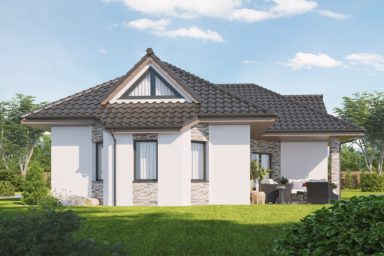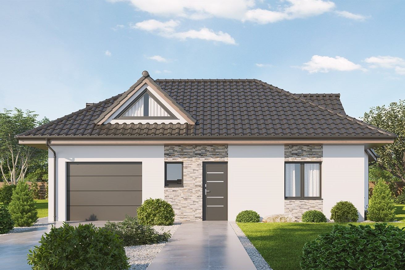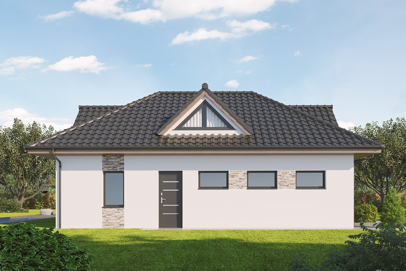Jednoduchá architektura zapadne do jakékoliv zástavby. Předpokládá se orientace hlavního hřebene domu ve směru severozápad–jihovýchod. Dům poskytne pohodlné a praktické bydlení čtyř- až pětičlenné rodině, s nízkými provozními náklady. Má účelně využitou dispozici, lze přistavět garáž s pultovou střechou nebo přístřešek pro auto.