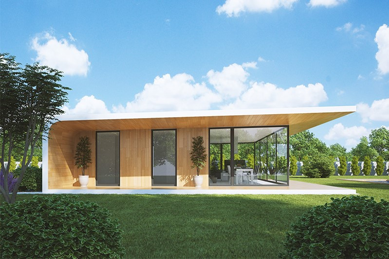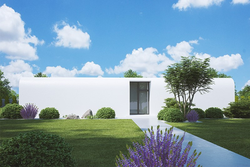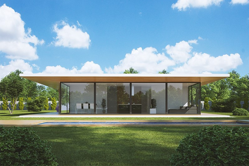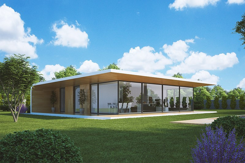 Základem konceptu přízemního domu pro čtyřčlennou rodinu je maximální kontakt s přírodou. Z každé místnosti vede bezbariérový vý... stup na terasu a zahradu. Originální moderní architektura a komfortní dispozice vyžadují velký rovný pozemek s hezkým výhledem, nejlépe v nové zástavbě nebo na okraji obce. Nejkrásnější částí domu je ze tři stran plně prosklený společný obývací prostor, ložnice dětí a rodičů jsou oddělené, takže každý má své soukromí i zázemí. Luxusní bydlení se pojí s vysokými investičními náklady.