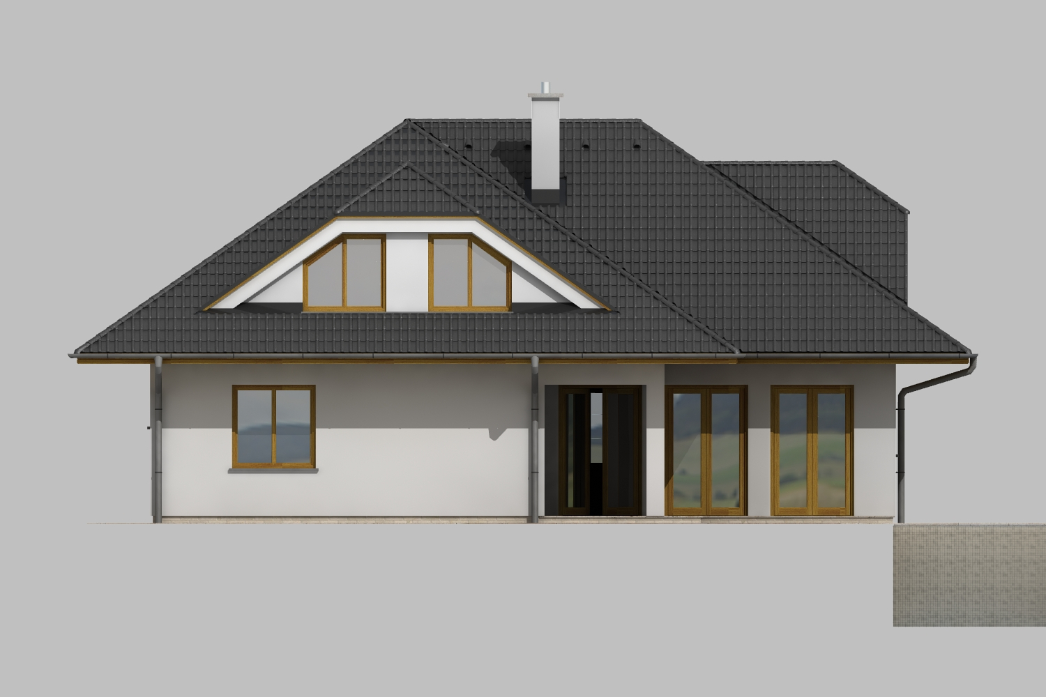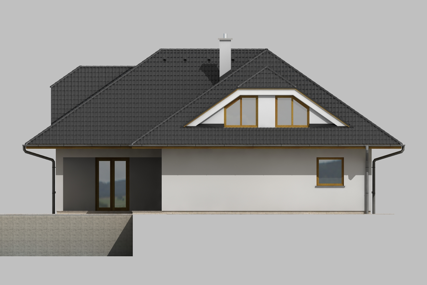 Tato verze oblíbeného domu na půdorysu písmene L s valbovou střechou a krytou terasou je určena pro milovníky jižního stylu – oblouků a vikýřů. Nabízí pohodlné soužití tří generací – v přízemí se kromě společného obývacího prostoru nachází velká ložnice s vlastním zázemím a také pracovna a pokoj pro hosty. V podkroví se nachází velkorysá rodičovská ložnice, nadstandardní rodinná koupelna a pohodlné dětské pokoje, v celém domě je dostatek úložného prostoru. Za zmínku stojí i prakticky řešená kuchyň oddělená od obývacího pokoje.