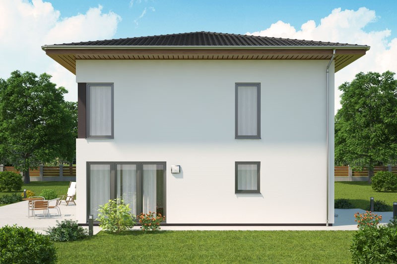Díky možnosti zvolit různý tvar střechy dům dobře zapadne do městského i venkovského prostředí. Dispozice nabízí nadstandardní komfort pro až pětičlennou rodinu – velké pokoje a pohodlné zázemí včetně potřebného úložného prostoru.