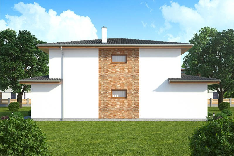 Dům poskytne praktické bydlení se zázemím odpovídajícím potřebám čtyřčlenné rodiny. Má krásně prosvětlený interiér. Díky malé zastavěné ploše a úsporné dispozici s minimem chodeb se toto bydlení nabízí za výhodnou cenu, s nízkými provozními náklady. Výhodou je možnost zvolit si tvar střechy a také přistavět garáž nebo kryté parkovací stání.
