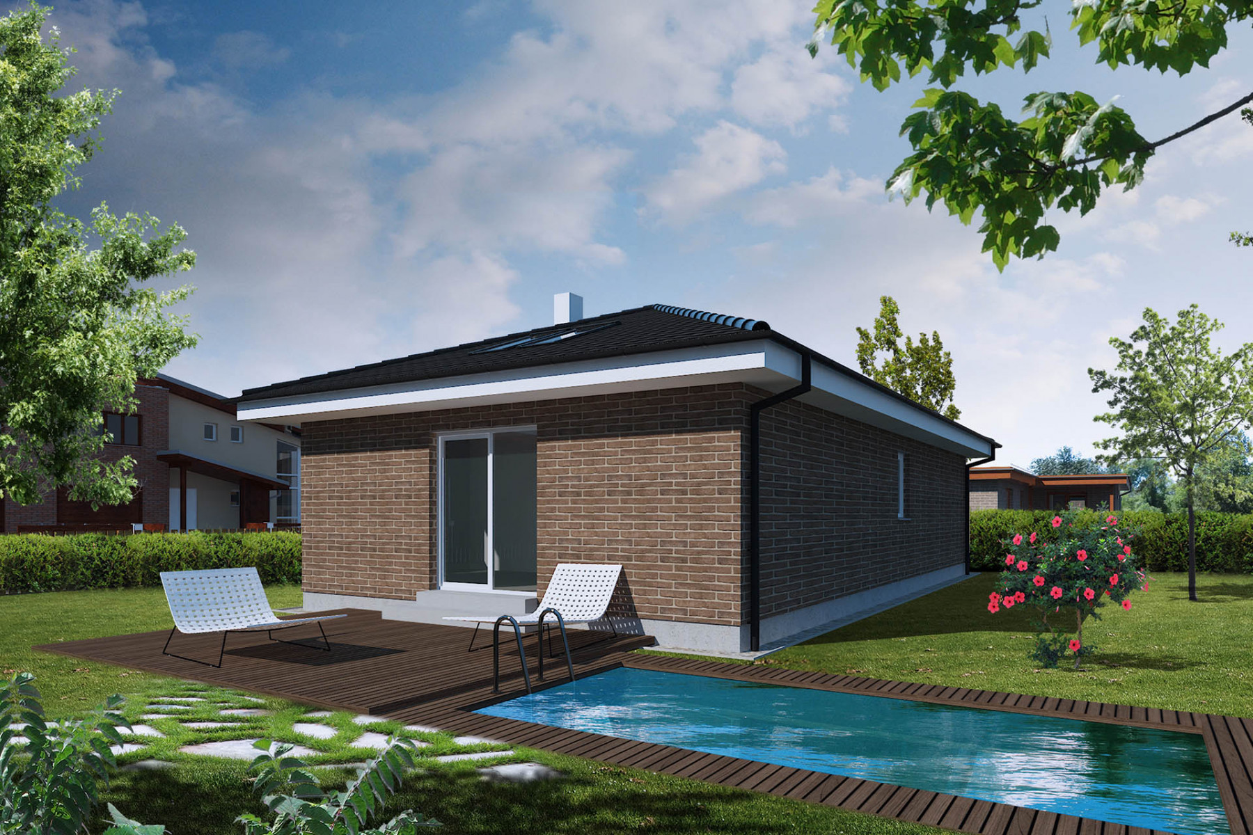 Klasický bungalov je navržen pro praktické bydlení tříčlenné rodiny, s vyváženým poměrem užitné hodnoty a ceny. Úsporné řešení na ne... velké zastavěné ploše poskytne i výhodu úsporného provozu.