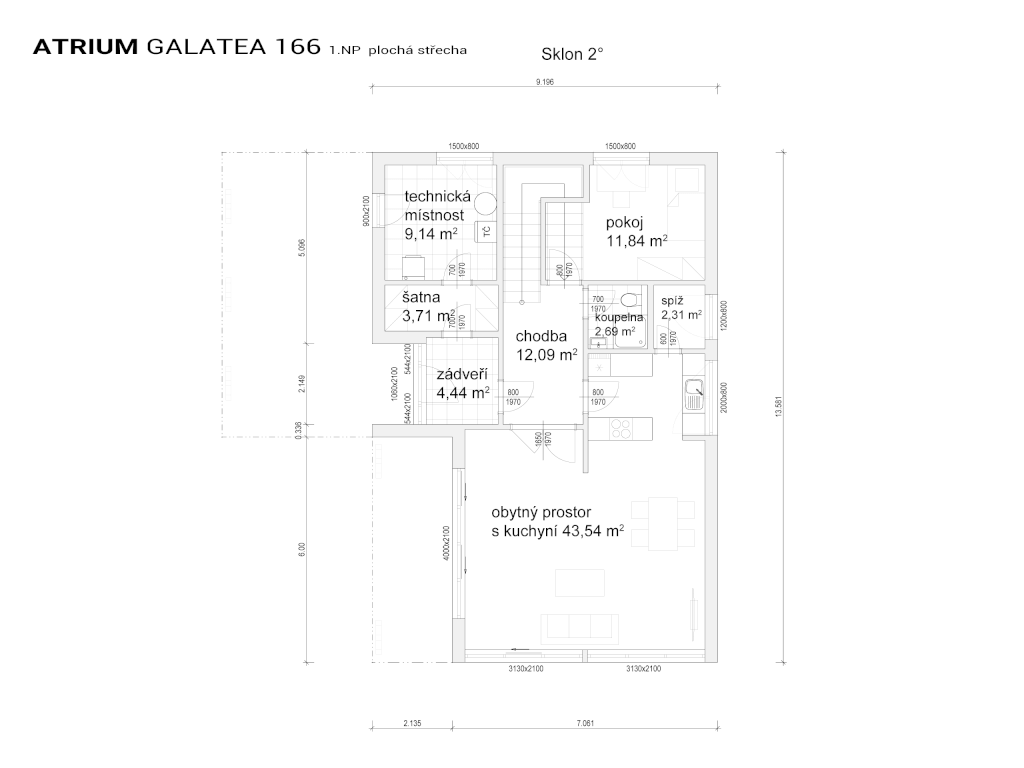 Rodinná vila Galatea 156 je netypická futuristická dřevostavba. Svým vzhledem zaujme toho, kdo má rád hodně prostoru a nebojí se ukázat svůj styl. Dům může být dvougenerační, nebo lze do přízemí umístit kancelář či pracovnu. Obývací pokoj je ze dvou stran prosklený a otevřený do zahrady. V patře jsou tři prostorné ložnice s vlastními šatnami a koupelnami. Z chodby a ze dvou ložnic je přístupná velká terasa nad obývacím pokojem. Je již na vás, jak terasu využijete a jestli na ni umístíte například vířivku či slunečník s lehátky na opalování. Rodinná vila Galatea je vhodná pro velkou až šestičlennou rodinu.
