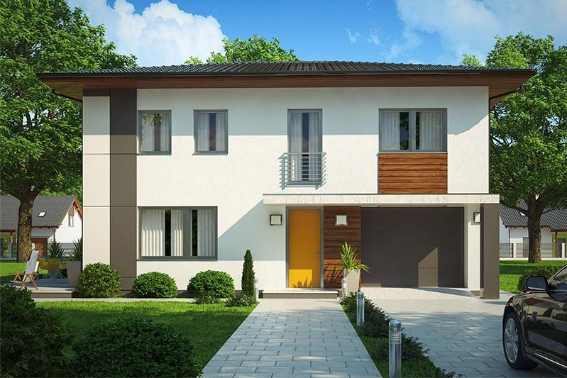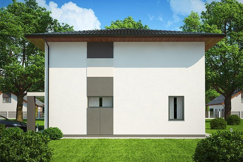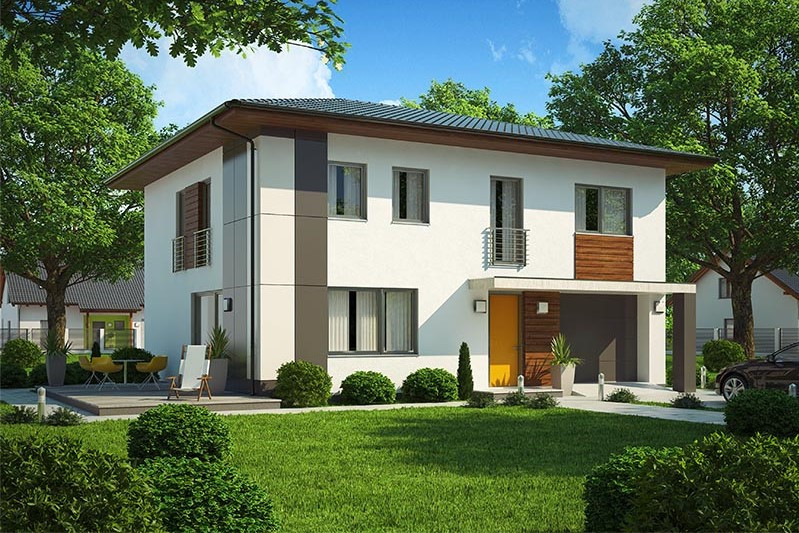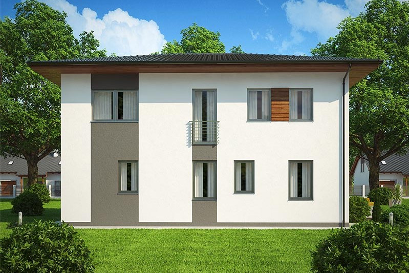 Dvoupodlažní dům s nízkou valbovou střechou najde své místo především v městské čtvrti. Dobře poslouží pětičlenné rodině, umožňuj... e i vícegenerační bydlení nebo práci doma. Jeho hlavní předností je pohodlná dispozice na nevelké zastavěné ploše, nadstandardně velké dětské pokoje, komfortní hygienické zázemí a integrovaná garáž.