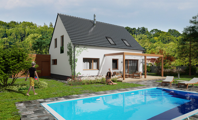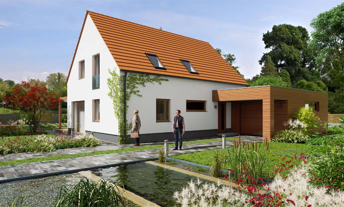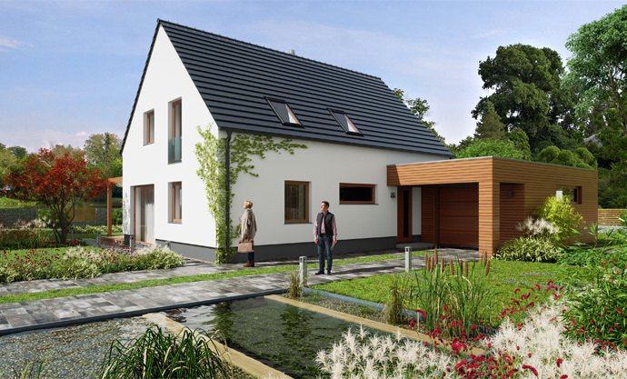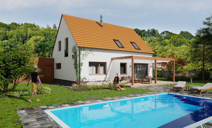 Jednoduchá architektura zapadne do jakékoliv zástavby. Předpokládá se orientace hlavního hřebene domu ve směru severozápad–jihovýchod. Dům poskytne pohodlné a praktické bydlení čtyř- až pětičlenné rodině, s nízkými provozními náklady. Má účelně využitou dispozici, lze přistavět garáž s pultovou střechou nebo přístřešek pro auto.