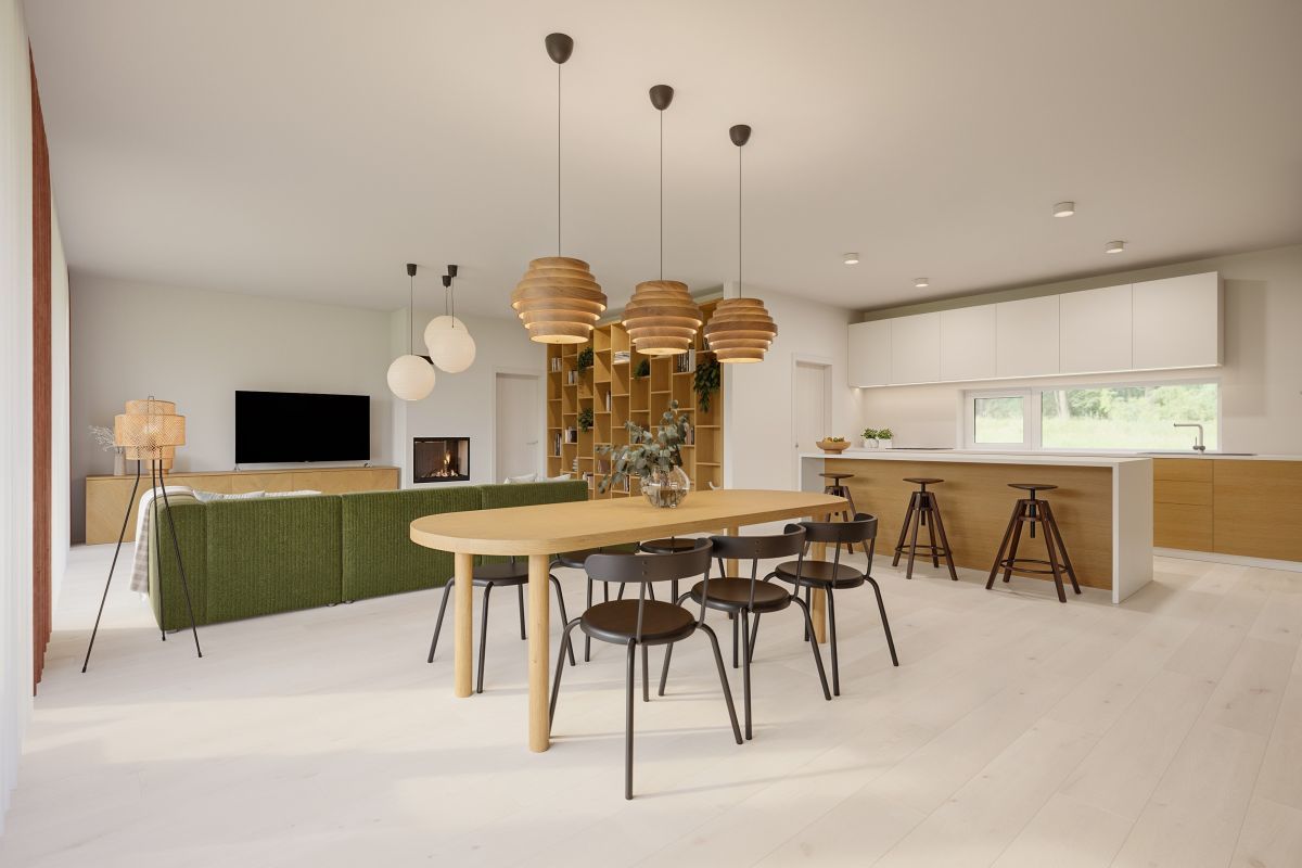komfortní dispozice, velký společný obývací prostor