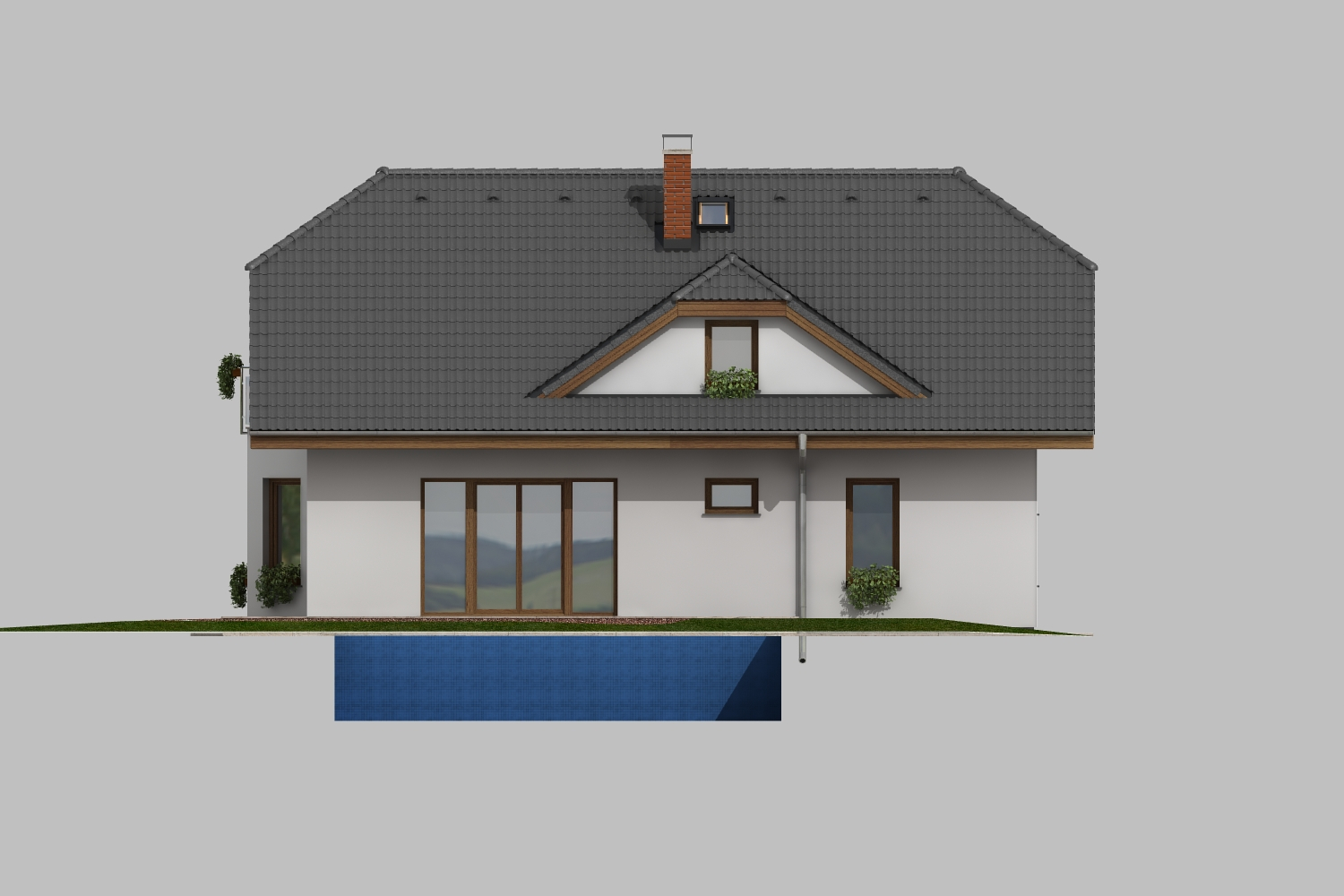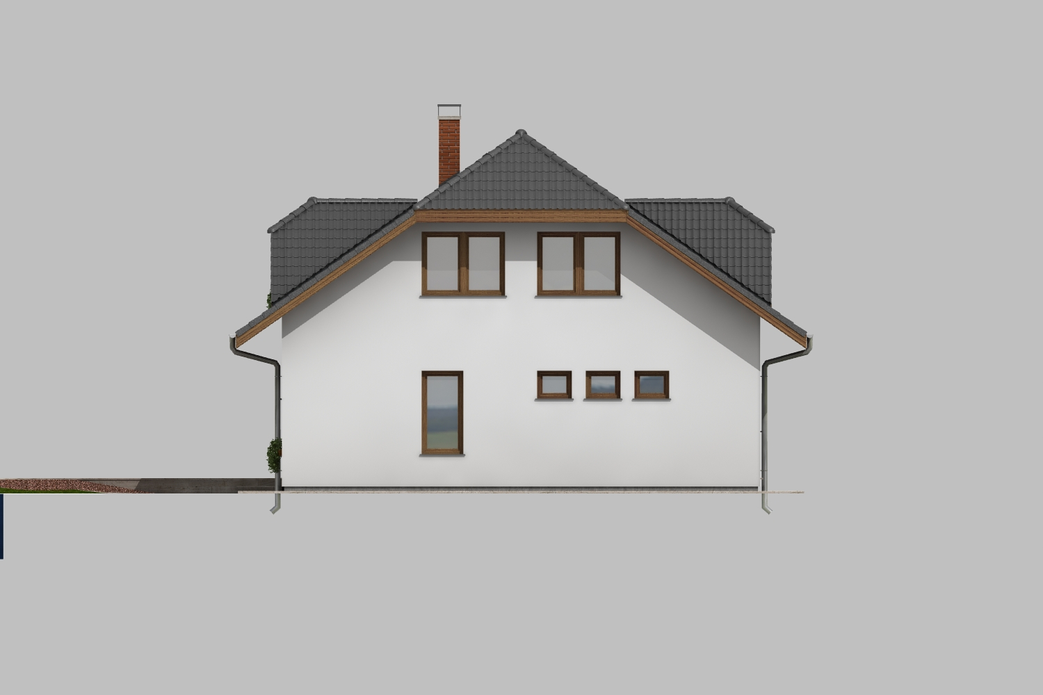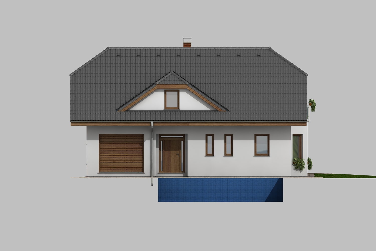 Dům s členitými fasádami, polovalbovou střechou a vikýři se bude hodit do malého města nebo na venkov. Poskytne pohodlné bydlení až šesti... lenné rodině. Za pozornost stojí prostorná vstupní hala propojená s velkým obývacím pokojem, v podkroví se nacházejí prostorné ložnice a velká pracovna. Zázemí odpovídá současným nárokům na pohodlné bydlení, včetně garáže integrované v domě. Pokoj v přízemí lze využít k vícegeneračnímu bydlení.