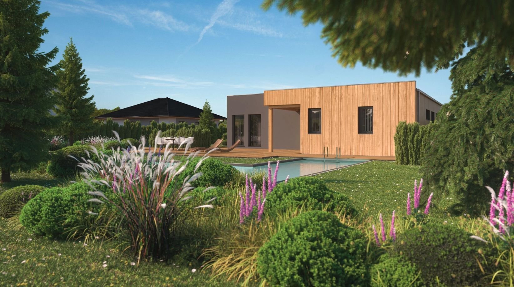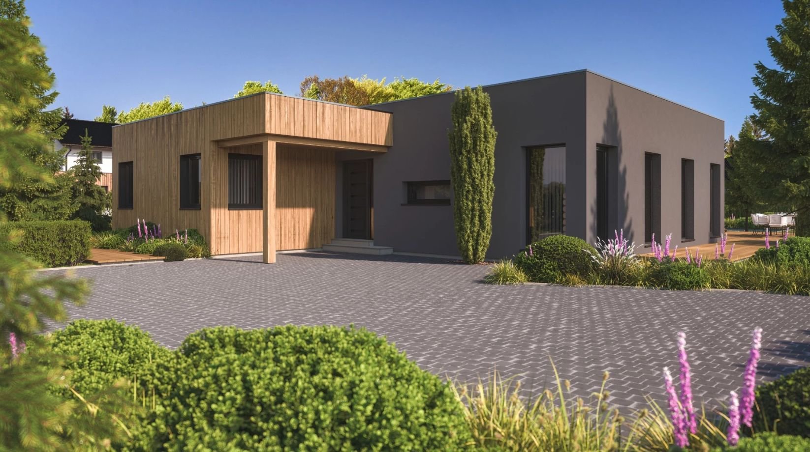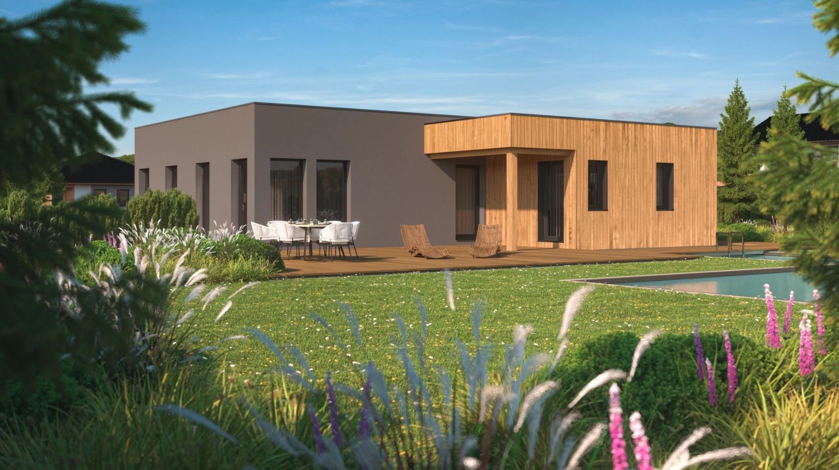 Půvabná dřevostavba zajímavým způsobem ztvárňuje tradiční archetyp domu se sedlovou střechu. Poskytne praktické bezbariérové bydlení čtyřčlenné rodině s odpovídajícím zázemím, Určitě si oblíbí atraktivní společný obývací prostor s okny do 3 stran a vysokým stopem. Benefit nabízí i garáž propojená s domem.