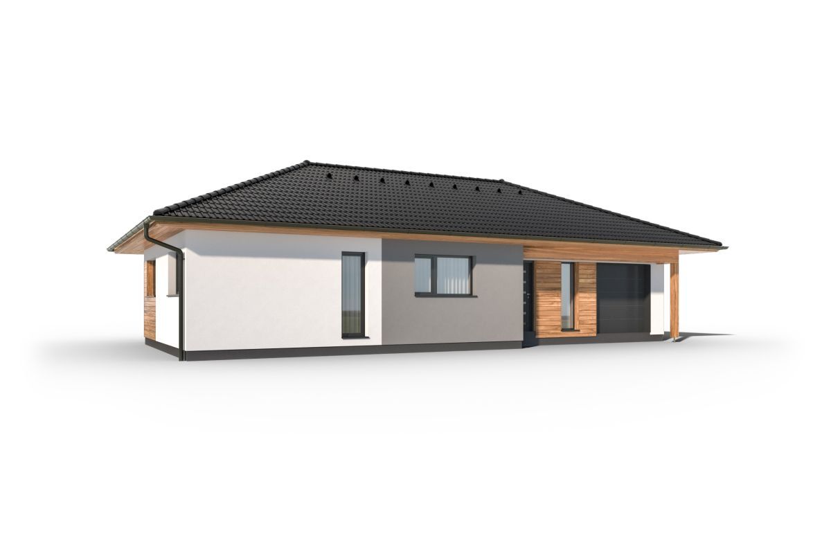 Pohodlný bezbariérový bungalov s nadčasovým vzhledem je ideální pro rodinu, která touží po bydlení v přímém kontaktu se zahradou. Hodí se jak do městského, tak venkovského prostředí.