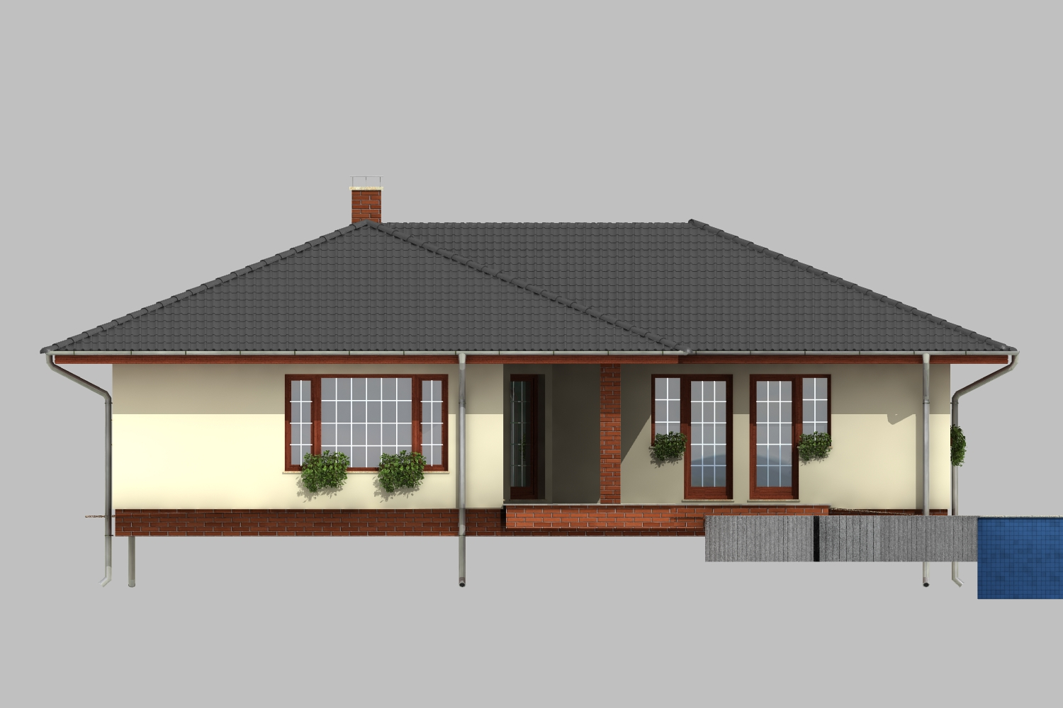 Klasický bezbariérový bungalov pro pohodlné a praktické bydlení čtyřčlenné rodiny. Dispozice je přehledně rozdělena na společnou denní a ložnicovou část, má velkou, částečně oddělenou kuchyň a vzdušný obývací pokoj. Výhodou je také krytá terasa a velká rodinná koupelna.