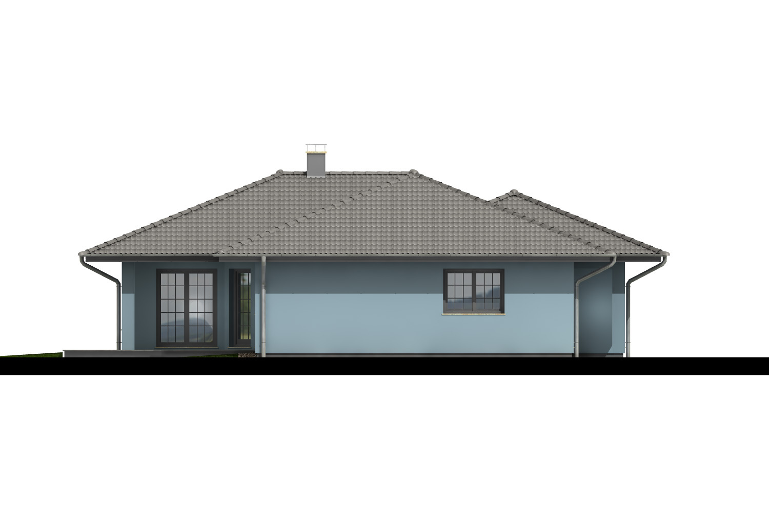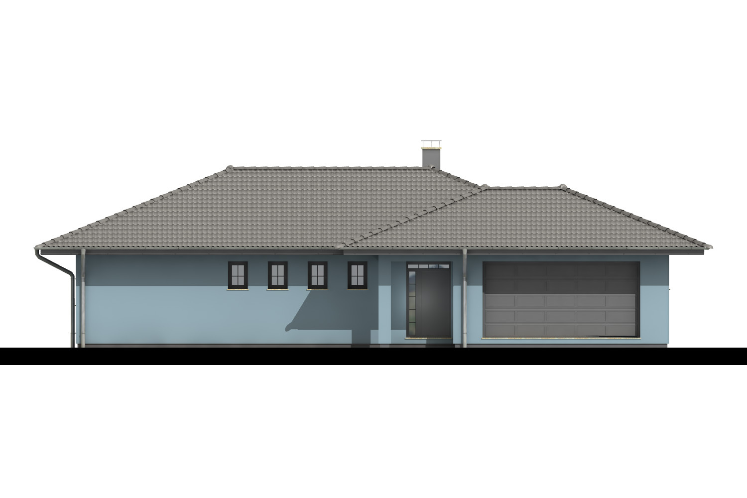 Jedna z mnoha verzí oblíbeného domu na půdorysu písmene L s valbovou střechou a rohovou terasou – bungalov pro čtyřčlennou rodinu. Nabízí účelnou bezbariérovou dispozici, přehledně rozdělenou na denní a ložnicovou zónu. Nejatraktivnější částí domu je velký společný obývací prostor s atypicky řešenou kuchyní. K výhodám domu patří i integrovaná garáž.