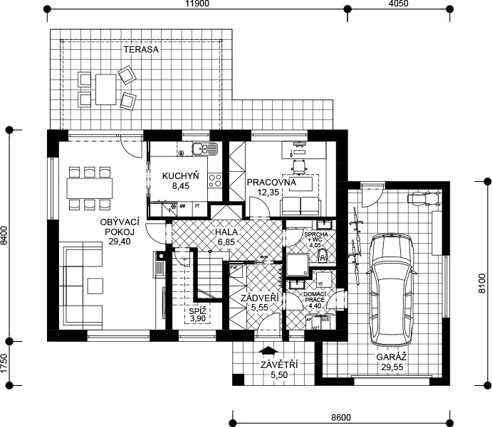 Díky možnosti zvolit různý tvar střechy dům dobře zapadne do městského i venkovského prostředí. Dispozice nabízí nadstandardní komfort pro až pětičlennou rodinu – velké pokoje a pohodlné zázemí včetně potřebného úložného prostoru.
