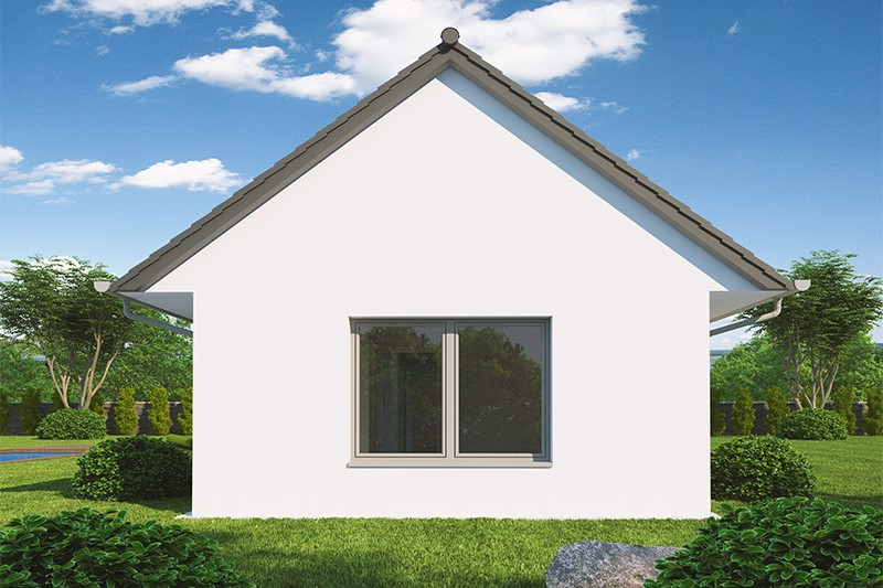 Tento bungalov díky originálnímu řešení střechy vybočuje ze stereotypu a nabízí praktické a zároveň úsporné bydlení tříčlenné rodině nebo dvojici. Bude dobře vypadat ve městě i na venkově. K výhodám patří prostorné zádveří, vyvážená velikost místností, přehledná dispozice, příjemná bude jistě i krytá terasa.