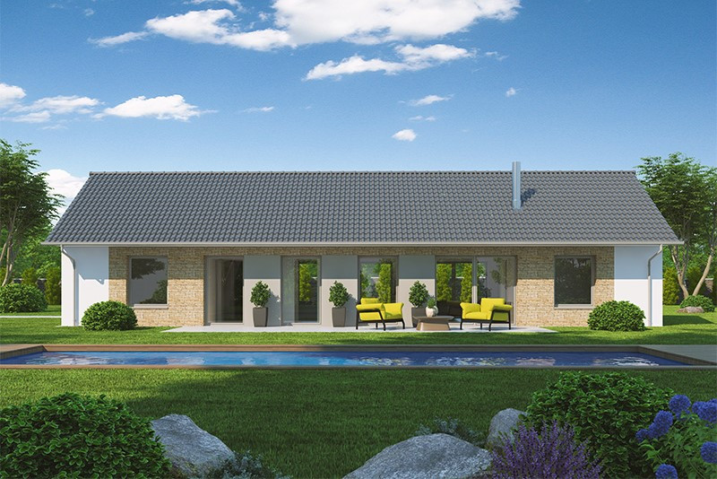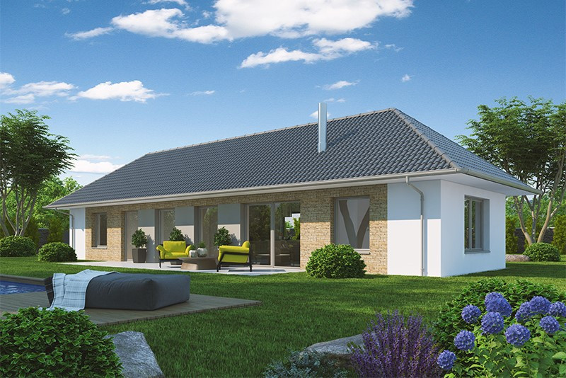 Bungalov se sedlovou nebo valbovou střechou nabízí řešení pro dlouhý úzký pozemek. Poskytne pohodlné bezbariérové bydlení tříčlenné ro... dině. Kromě úsporné dispozice se může pochlubit prosvětleným vzdušným interiérem a pohodlnými ložnicemi. Jedná se o ekonomické řešení.