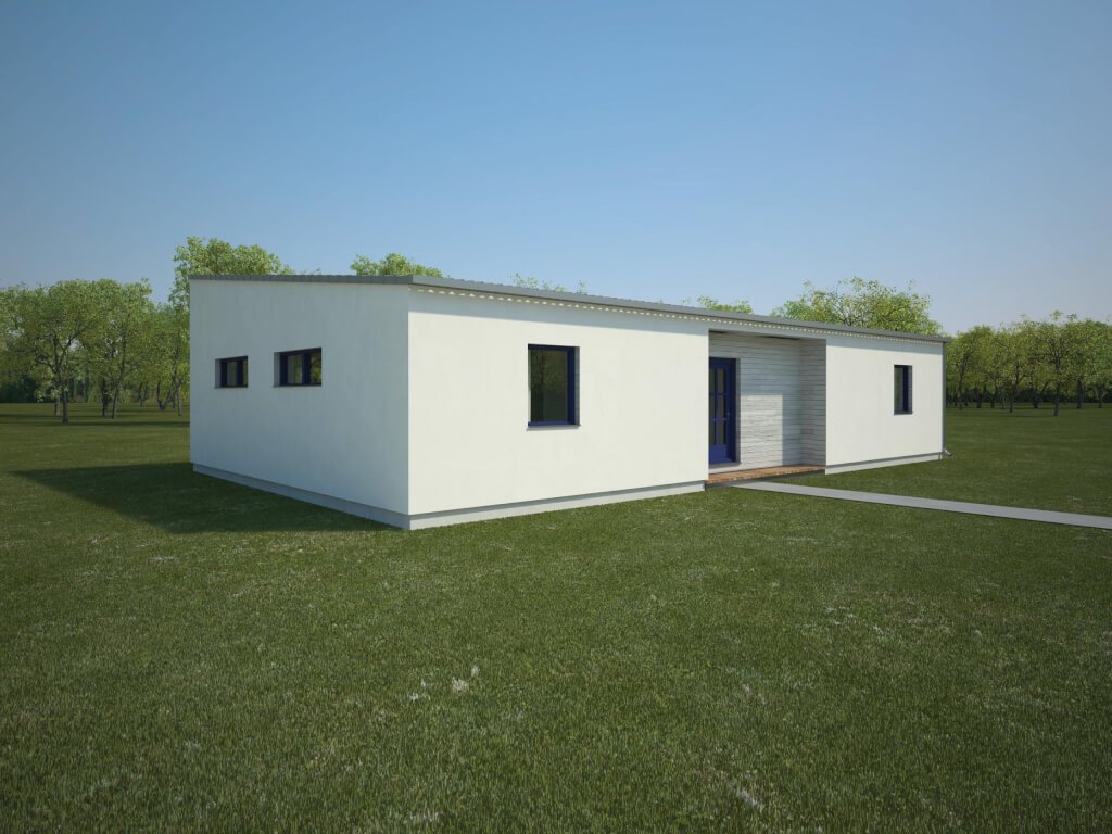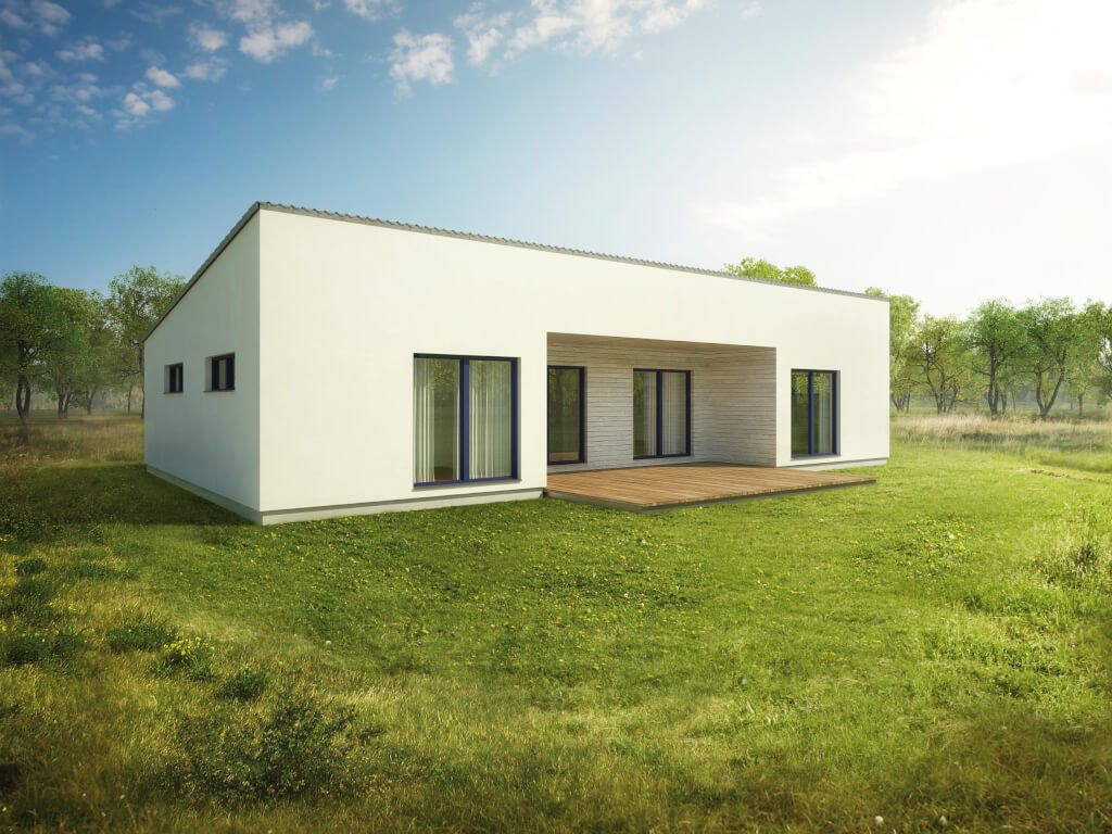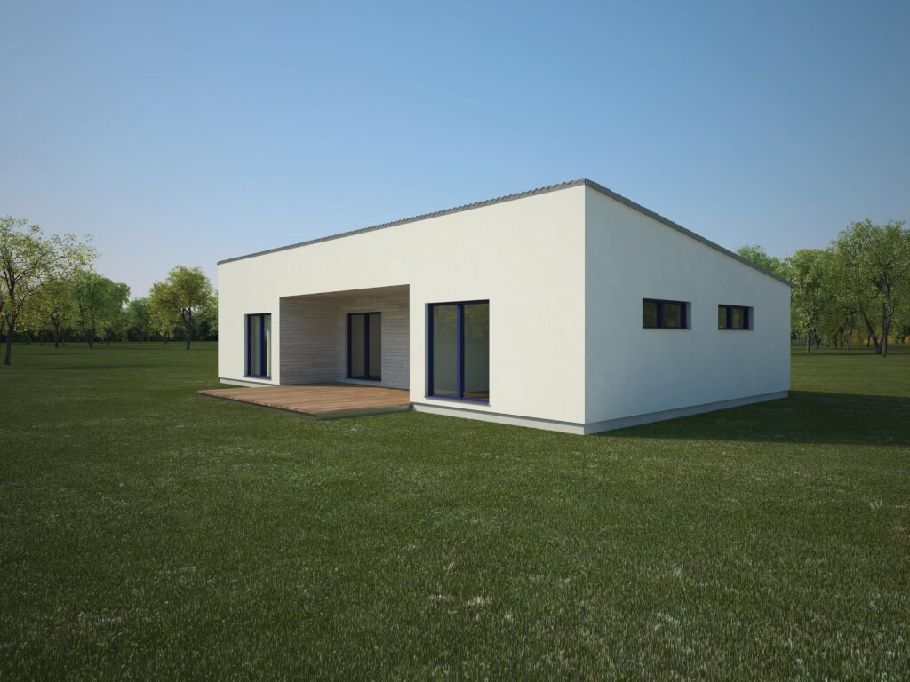 Jednoduchá nadčasová architektura s pultovou střechou se bude líbit ve městě i na venkově, poskytne pohodlné bydlení čtyřčlenné rodině. ... Ke kladům patří bezbariérové řešení, chráněná zapuštěná terasa, komfortní ložnice rodičů a pohodlné koupelny.