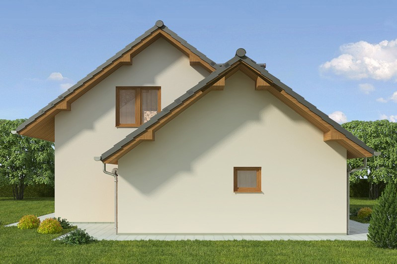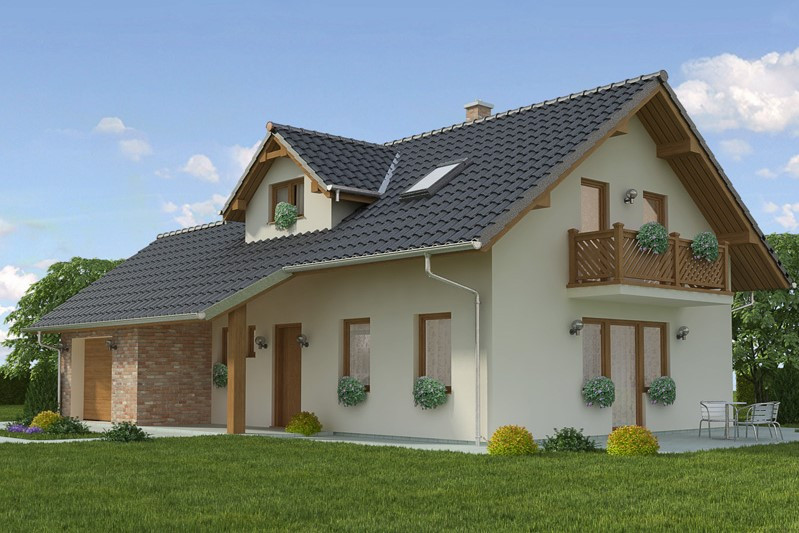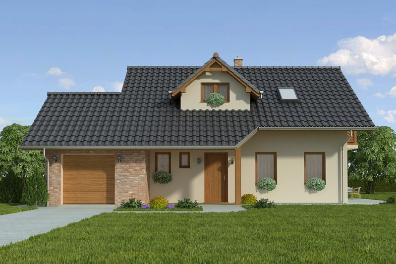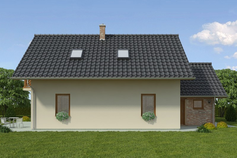 Úsporný dům tradičního vzhledu je vhodný spíše do venkovského prostředí nebo do menšího města. Je navržen pro čtyřčlennou rodinu. Má... klasické rozvržení – společná obývací část v přízemí, v podkroví 3 ložnice a rodinná koupelna. Výhodou je integrovaná garáž a domácí pracovna.