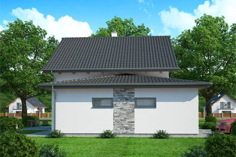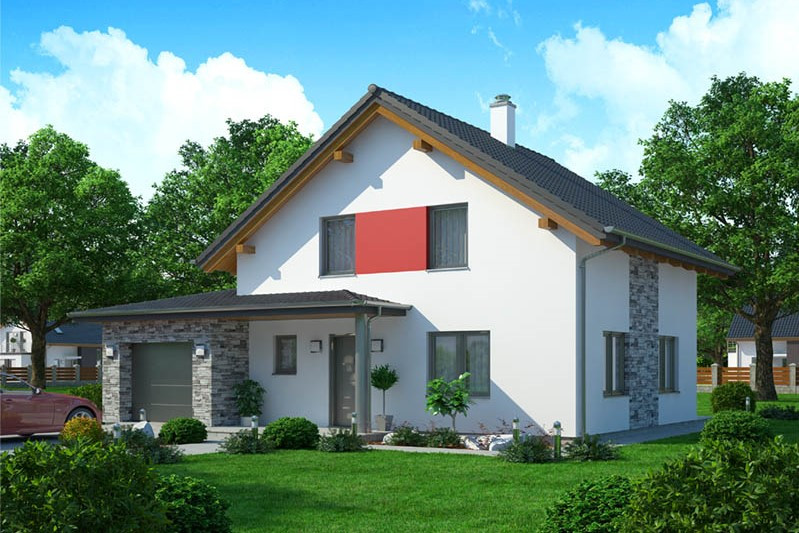 Dům tradičního vzhledu se uplatní na venkově či na menším městě. Je navržen pro čtyřčlennou rodinu, jednoduchým způsobem lze provést ... pravu pro pětičlennou rodinu nebo vícegenerační bydlení. V přízemí se nachází příjemná společná obývací část ve tvaru L. K výhodám patří také také garáž a pohodlné koupelny.