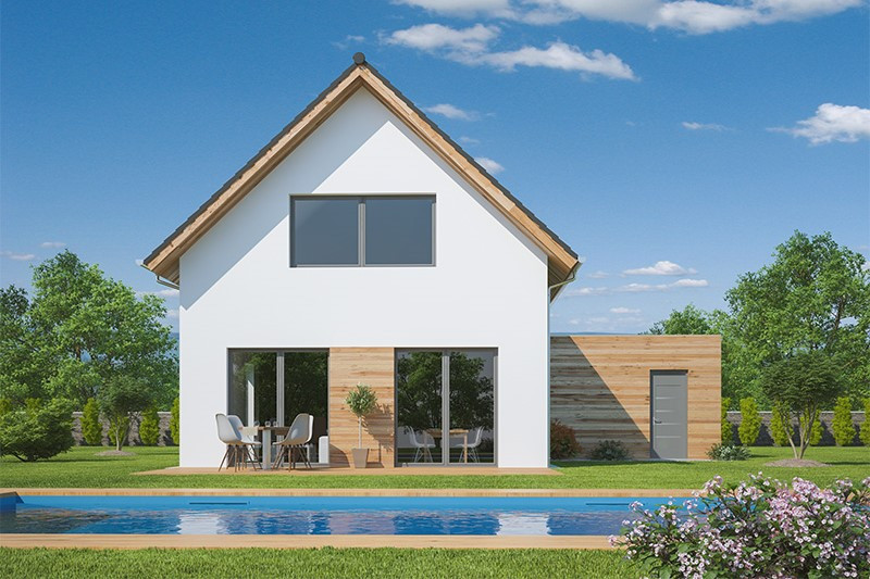 Díky možnosti zvolit různý tvar střechy dům dobře zapadne do městského i venkovského prostředí. Dispozice nabízí nadstandardní komfort pro až pětičlennou rodinu – velké pokoje a pohodlné zázemí včetně potřebného úložného prostoru.