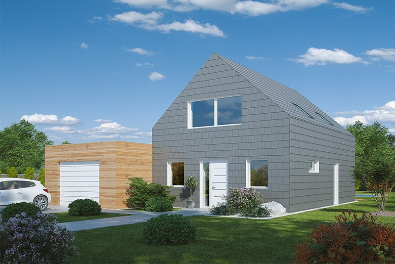 Dům dobře zapadne do města i na venkov a uspokojí nároky na moderní bydlení pro čtyřčlennou rodinu. Velký společný obývací prostor v přízemí je promyšleně rozdělen na kuchyňskou část a sezení, ke kladům patří také chráněná rohová terasa, pohodlné zázemí a dostatek úložného prostoru.