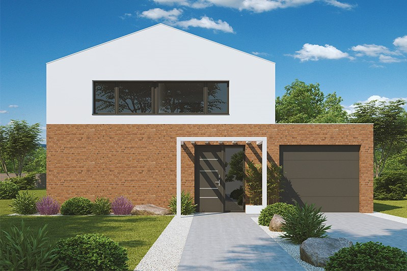 Elegantní dům s tradičním tvarem a moderním proskleným designem nabízí praktické bydlení pro čtyřčlennou rodinu. Dispozice je účelně ro... zložena na nevelké zastavěné ploše, v přízemí je prostorná společná obývací část a garáž propojená s domem, v patře ložnice. Dům bude výborně vypadat v jakémkoliv prostředí.