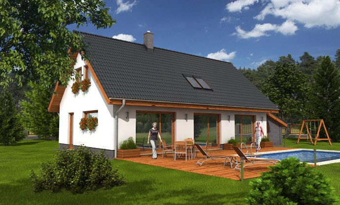 Díky možnosti zvolit různý tvar střechy dům dobře zapadne do městského i venkovského prostředí. Dispozice nabízí nadstandardní komfort pro až pětičlennou rodinu – velké pokoje a pohodlné zázemí včetně potřebného úložného prostoru.