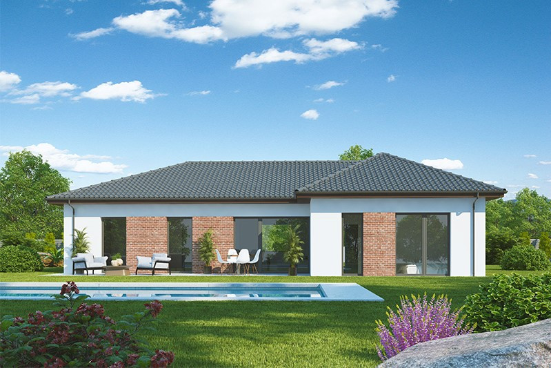 Bezbariérový bungalov střední velikosti nabídne pohodlné bydlení až pětičlenné rodině. Srdcem rodinného života je společná obývací č... ást orientovaná na rohovou terasu. V oblíbené se dispozici tvaru L se podařilo oddělit apartmá pro rodiče od zóny dětských pokojů, takže v ložnicích nebude chybět soukromí. Při nevelké zastavěné ploše má dům i integrovanou garáž.