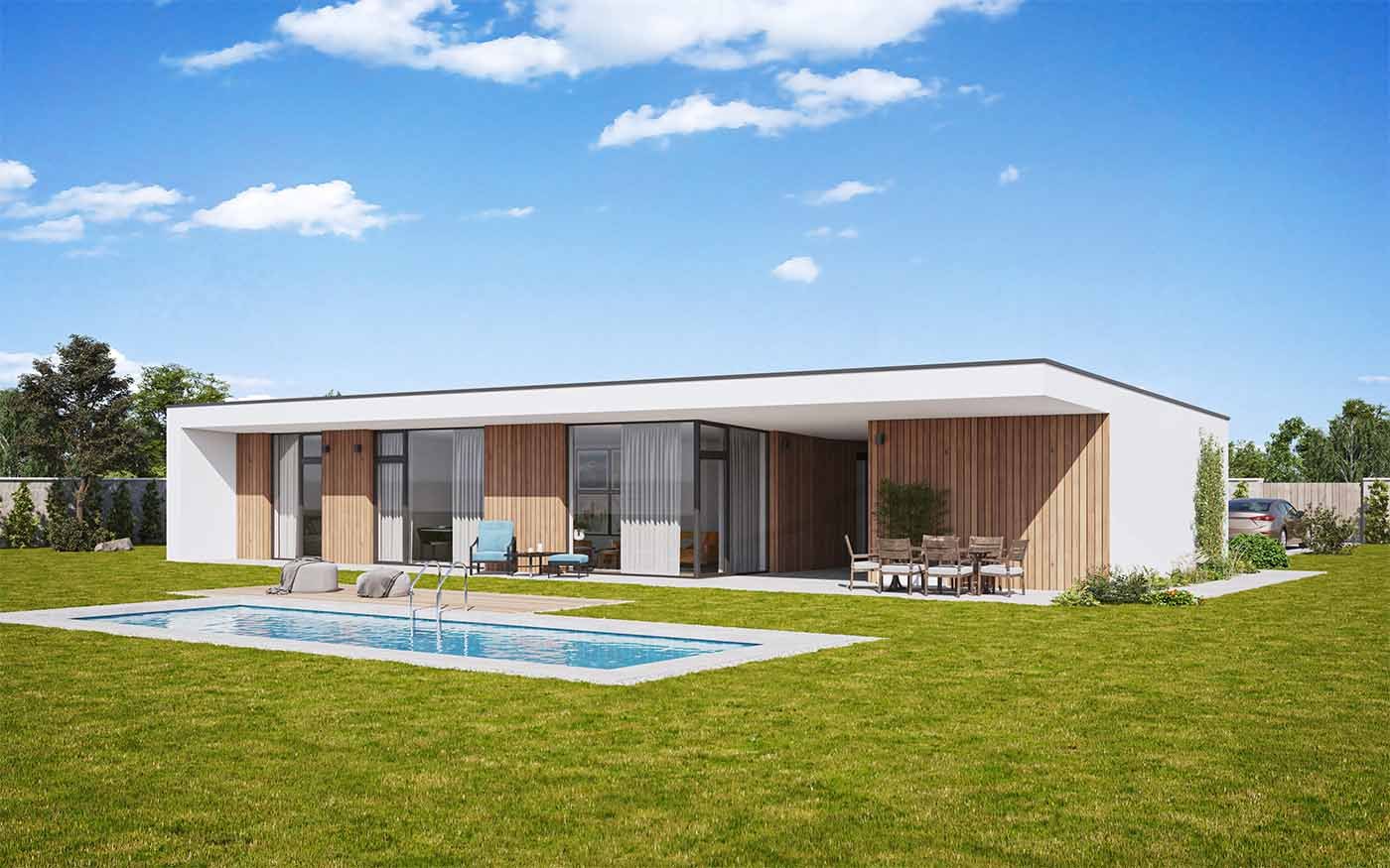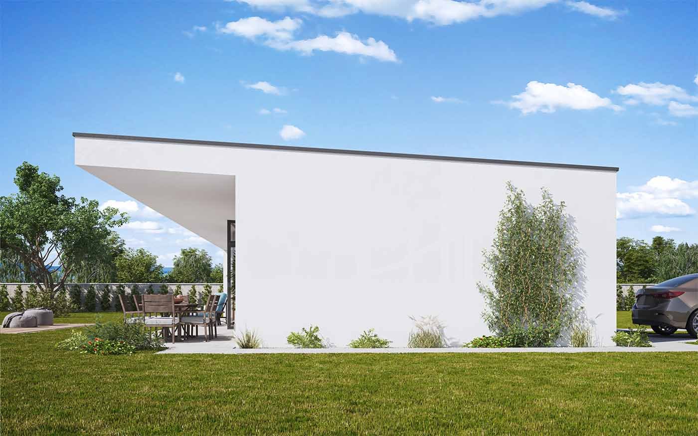 Lukáš 60 je přízemní dům typu bungalov s rovnou střechou o dispozici 3 + kk s garáží. Moderní vzhled dobře zapadne do současné zástavby, ale bude se hodit i na venkov.