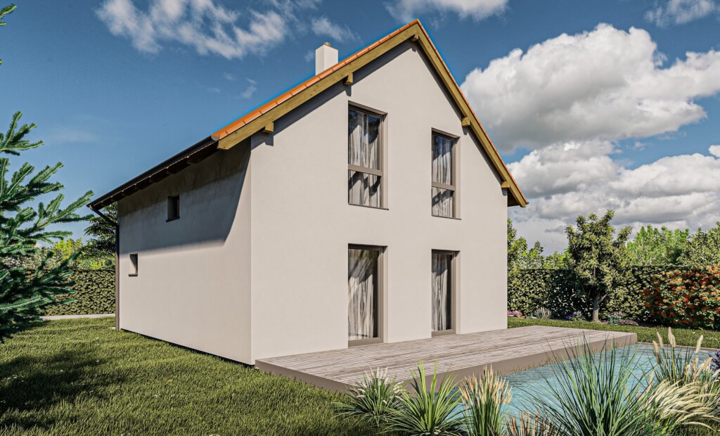 Jednoduchý dům se sedlovou střechou si můžete vybrat v tradičním nebo moderním provedení a přizpůsobit ho okolní zástavbě. Výhodou je ma... lá zastavěná plocha a úsporná dispozice, kde nechybí terasa s pergolou.