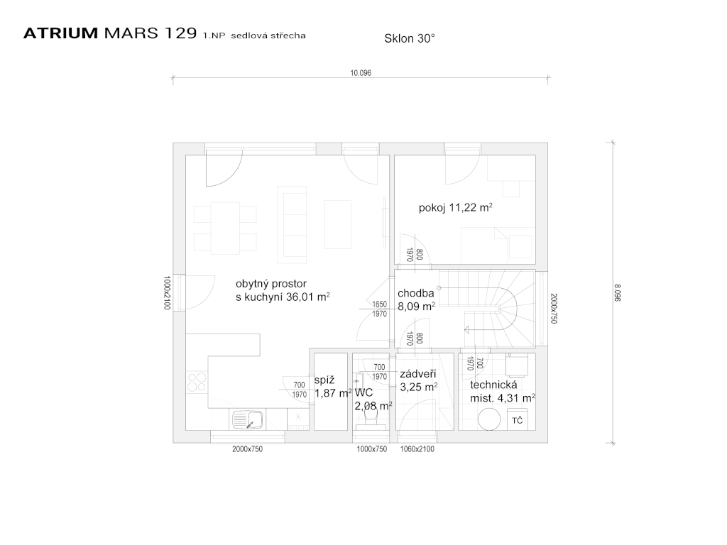Dvoupodlažní dům Mars 129 se sedlovou střechou je díky modernímu architektonickému zpracování velmi oblíbený. Výborně se hodí hlavně do nově vznikajících městských a příměstských lokalit. Velké prosklené plochy v pokojích nabízí přímý kontakt s okolím domu a otevřený pohled do krajiny. Neobvyklým architektonickým prvkem jsou přesahující štíty nad střechu domu. Výhodou jsou plnohodnotné výšky stěn v patře! Další zajímavostí může být vzhled fasády, na kterou můžou být použity například cembonitové desky nebo dřevěný obklad.