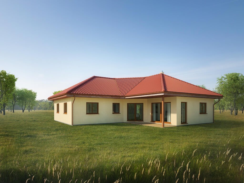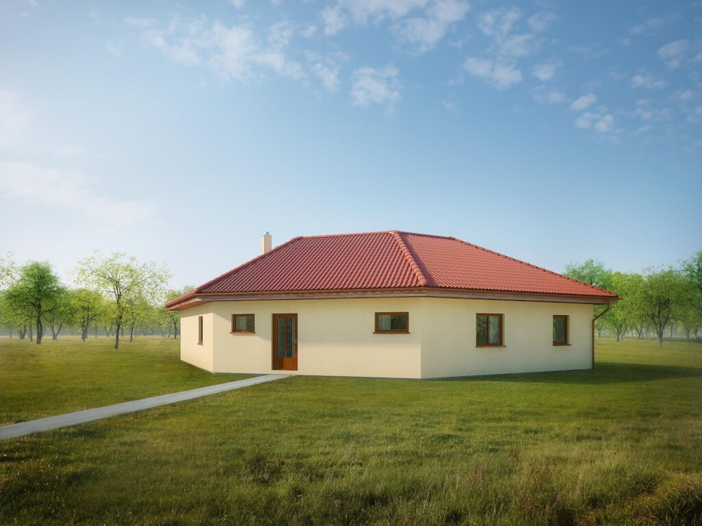 Typová dřevostavba Merkur 126 patří modelem mezi novější rodinné domy. Tyto oblíbené bungalovy do „L“ doznaly již několika různě upravených realizací. Střecha domu nad obývacím pokojem je dostatečně prodloužená, aby přesah střechy plnil dvě funkce. Zaprvé – slouží jako slunolam, kdy správně zvolený přesah v létě brání horkému slunci svítit do oken, naopak v zimě svítí níže položené slunce celý den do oken a pokoj vám vyhřívá. Za druhé – vznikne příjemné zastřešení nad terasou, kde vás nepřekvapí náhlý déšť. Pokud chcete mít větší dům bez schodů a s praktickou kompozicí místností s přístupem do zahrady, je bungalov Merkur 126 ta správná volba.