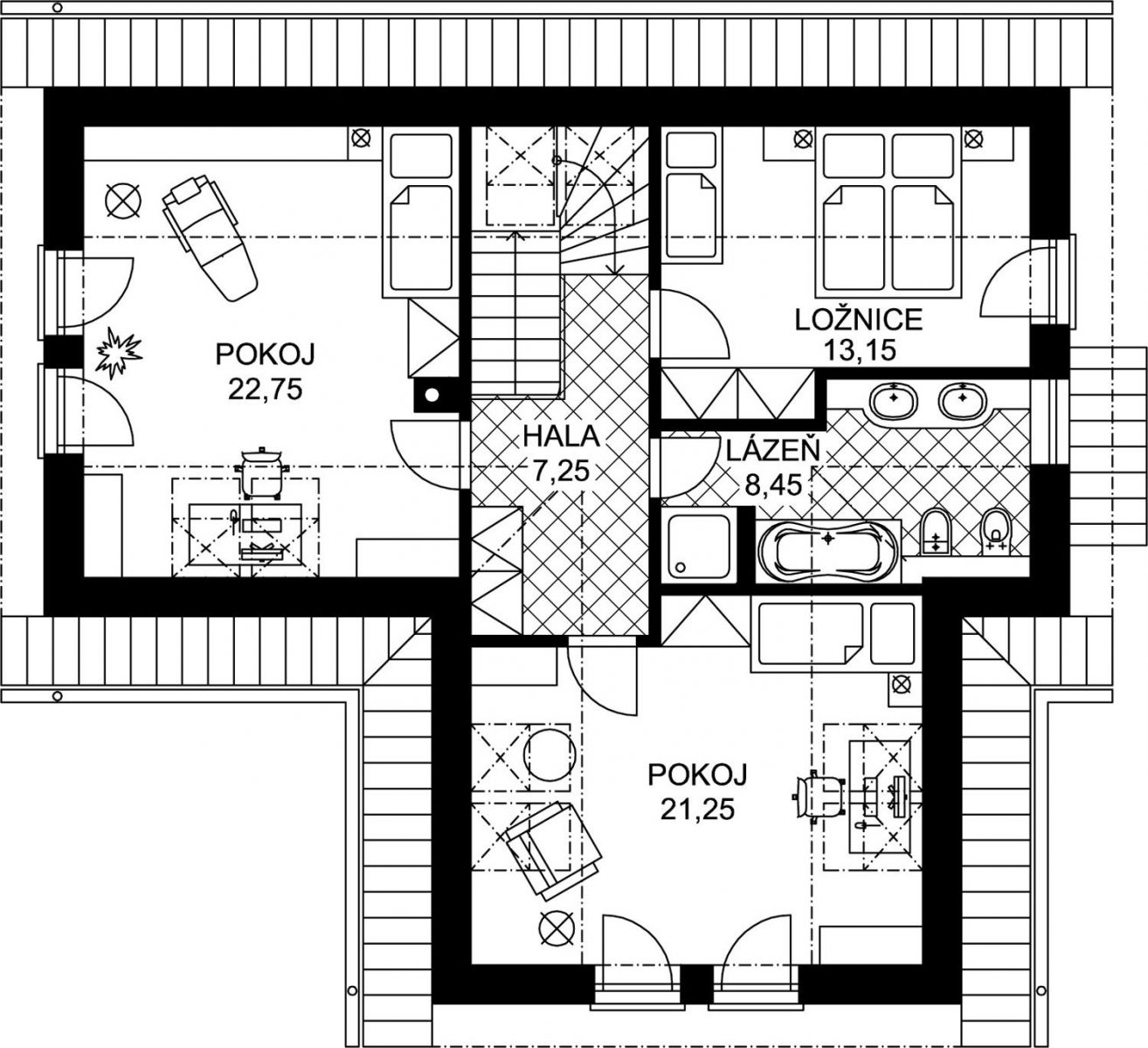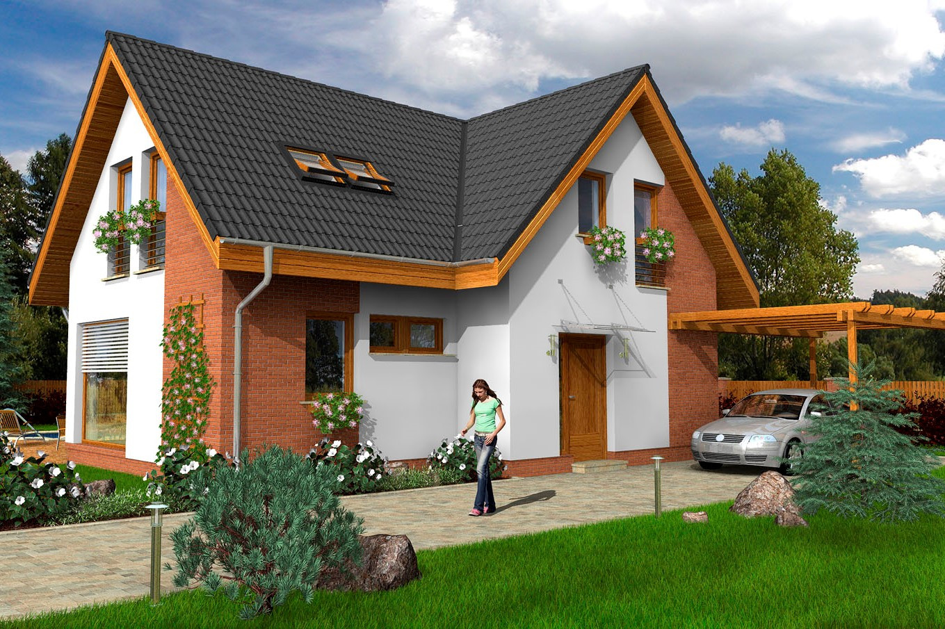 Díky možnosti zvolit různý tvar střechy dům dobře zapadne do městského i venkovského prostředí. Dispozice nabízí nadstandardní komfort pro až pětičlennou rodinu – velké pokoje a pohodlné zázemí včetně potřebného úložného prostoru.