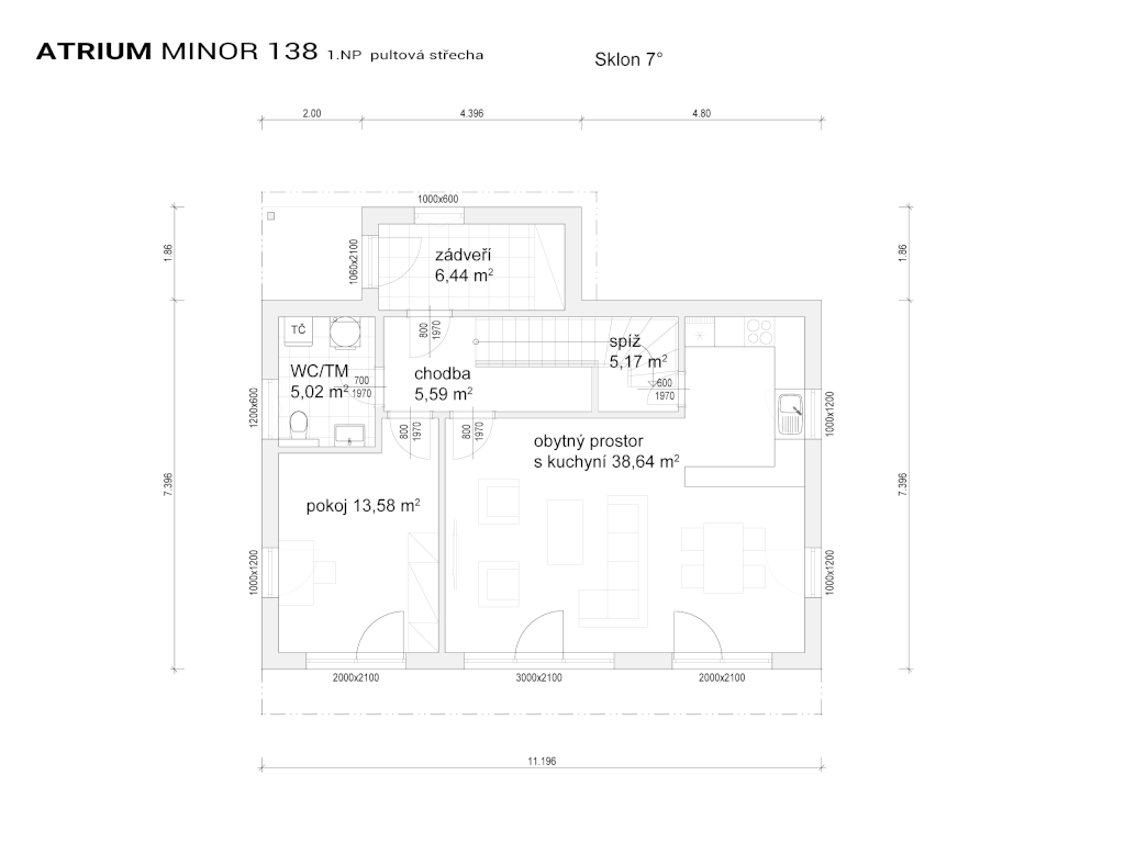 Elegantní dřevostavba Minor 138 má již mnoho svých majitelů. Je symbolem nadčasové architektury. Do domu jsou zakomponovaná velká okna, která přivádí do všech prostorných místností velké množství světla. Na zjemnění můžeme použít slunolam nebo jiné stínící prvky jako žaluzie či rolety. Nejvíce prosklených ploch má samozřejmě obývací pokoj spojený s kuchyní. Podschodišťový prostor u kuchyně můžete využít jako spíž. Přímý přístup do zahrady oceníte nejen v letních měsících při posezení s přáteli.
