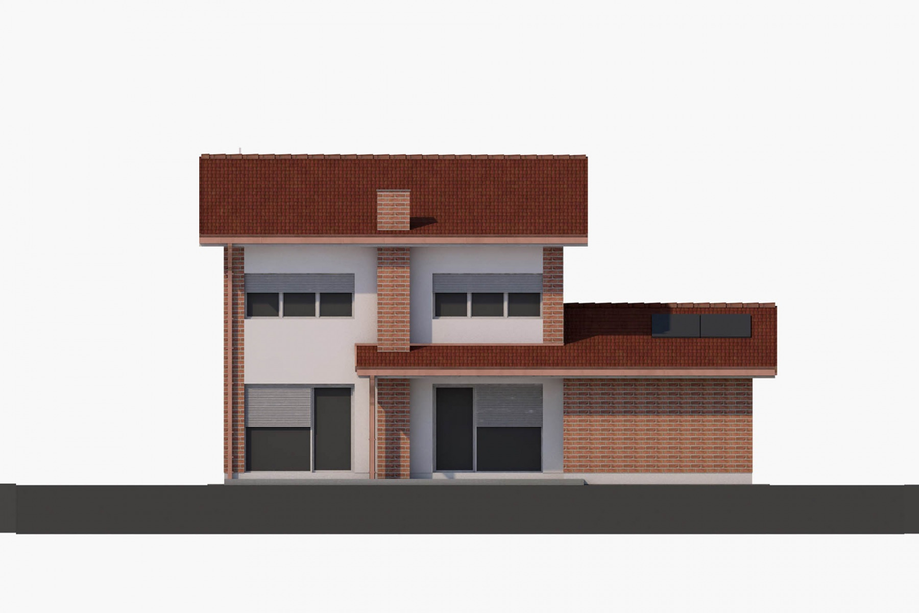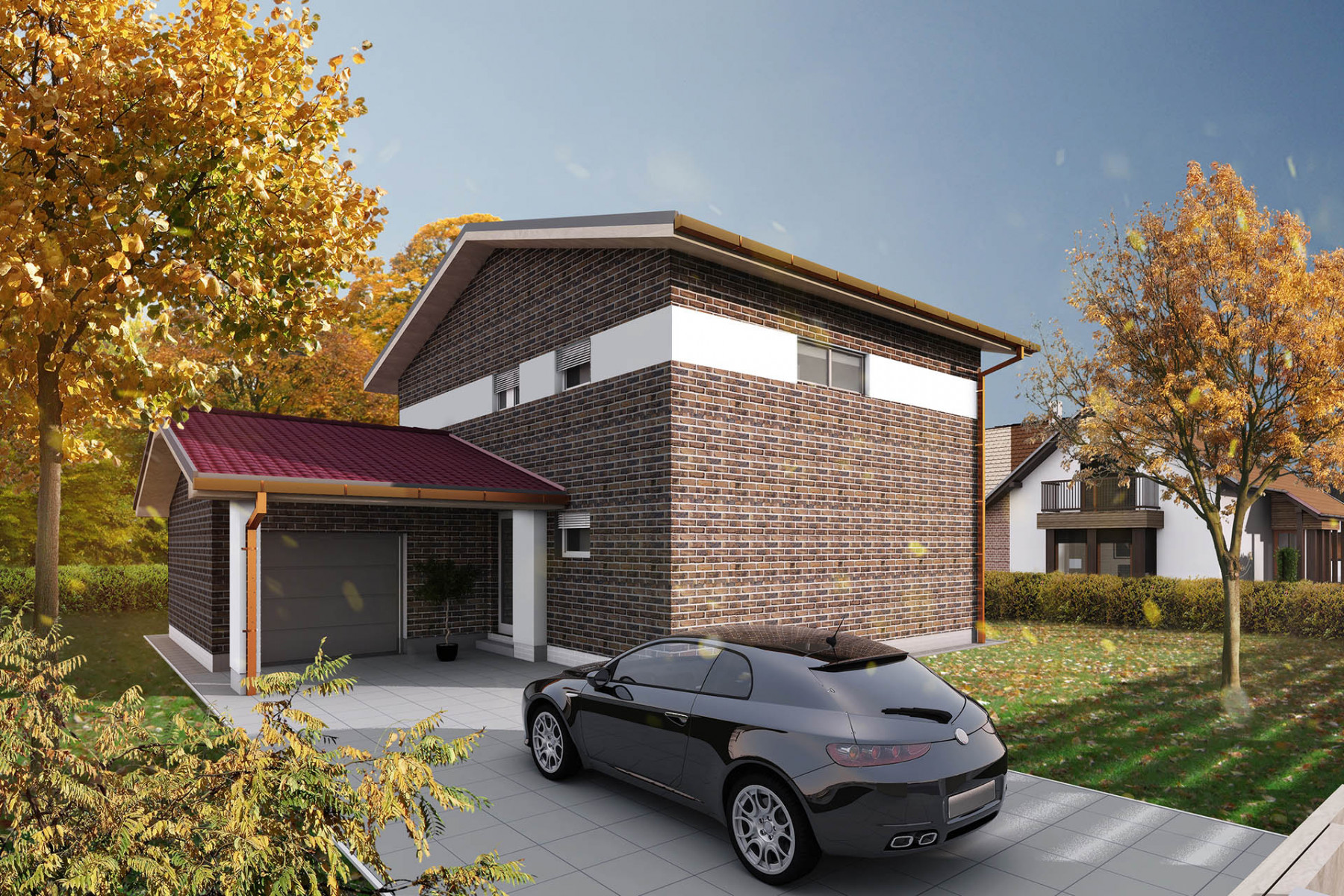 Tento typový projekt řeší rodinný dům s dispozici 5+kk s garáží. Vstup do rodinného domu je přes kryté závětří, které je tvořeno přesahem střechy z garáže. V garáži je uvažováno umístění technologického vybavení domu.