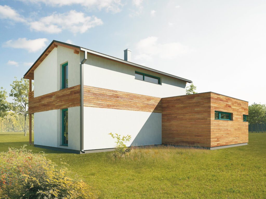 Dvoupodlažní dům s kombinací ploché a nízké sedlové střechy nabízí komfortní bydlení pro až pětičlennou rodinu. Dispozice je vhodná pr... o vícegenerační bydlení. Zajímavým prvkem je prostorná schodišťová hala, která slouží jako obytná, a také oddělená kuchyň a jídelna. Originálně je pojato i horní podlaží s atypickou koupelnou a balkony.