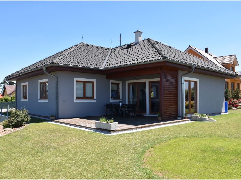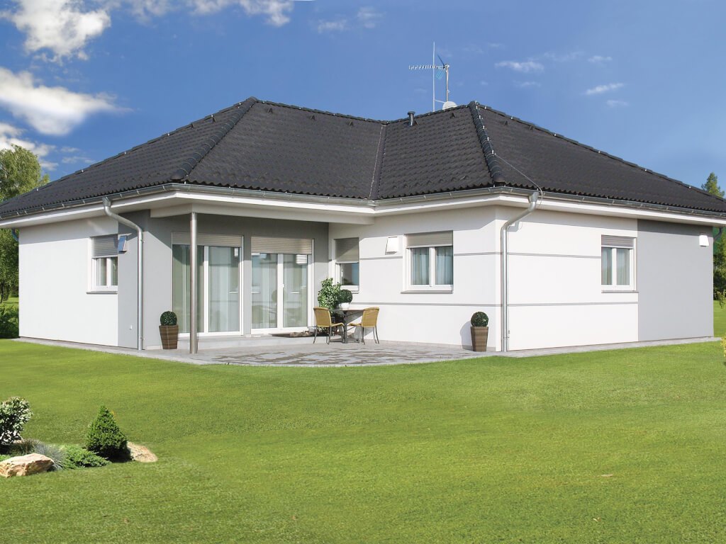 Oblíbený „klasický“ bungalov ve tvaru písmene L s valbovou střechou zapadne do zástavby v městském i venkovském prostředí. Posky... tne pohodlné bezbariérové bydlení pro až čtyřčlennou rodinu, která uvítá zejména velký společný obývací prostor a chráněnou rohovou terasu.