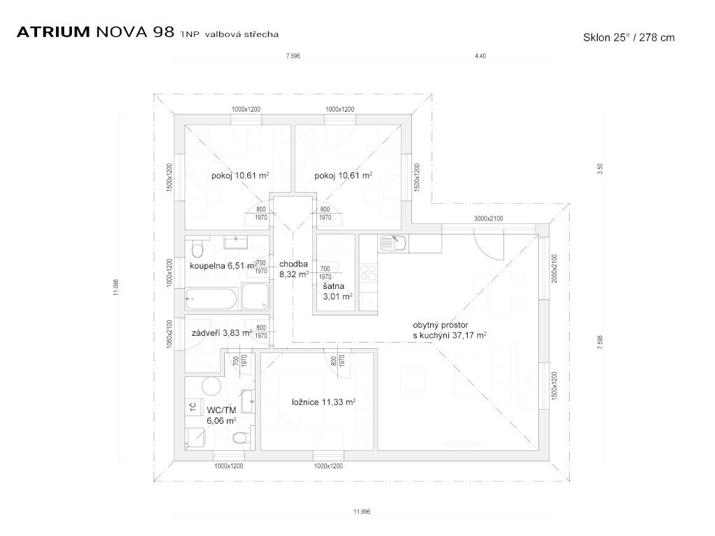 Menší bungalov Nova 98 je vhodný pro čtyřčlennou rodinu. Tyto rodinné domy jsou velmi oblíbené. Ale žádný není na 100 % stejný. Každý realizovaný bungalov Nova je jiný, ať svou venkovní podobou nebo vnitřním uspořádáním. Je příjemné sedět v obývacím pokoji a pozorovat velkými prosklenými okny měnící se přírodu. Pokud si dopřejete i krb, pak máte útulný domov zaručen! Zkuste na fasádu částečný dřevěný obklad a uvidíte, jak bude dům lahodit oku.