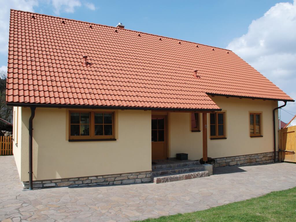 Dům tradičního vzhledu se bude hodit především na venkov. Nabízí praktické bezbariérové bydlení a rezervní prostor k využití v podkroví... . Pro čtyřčlennou rodinu by se hodilo ještě jedno WC a šatna.