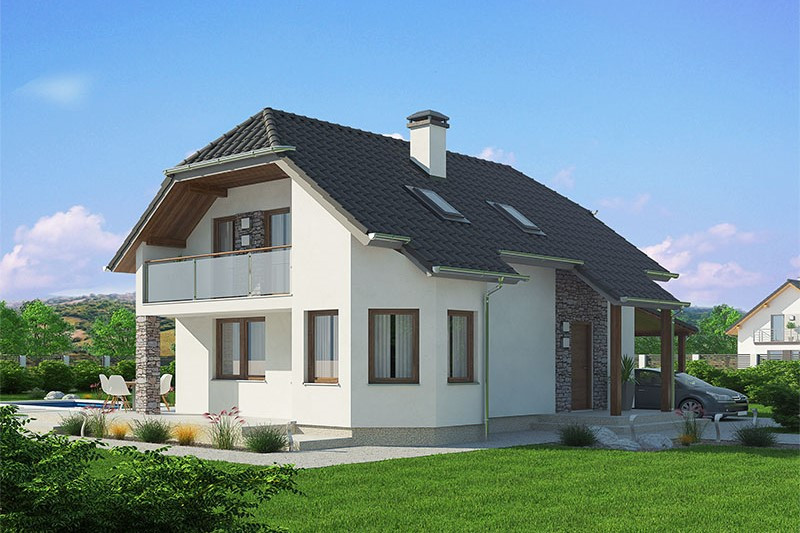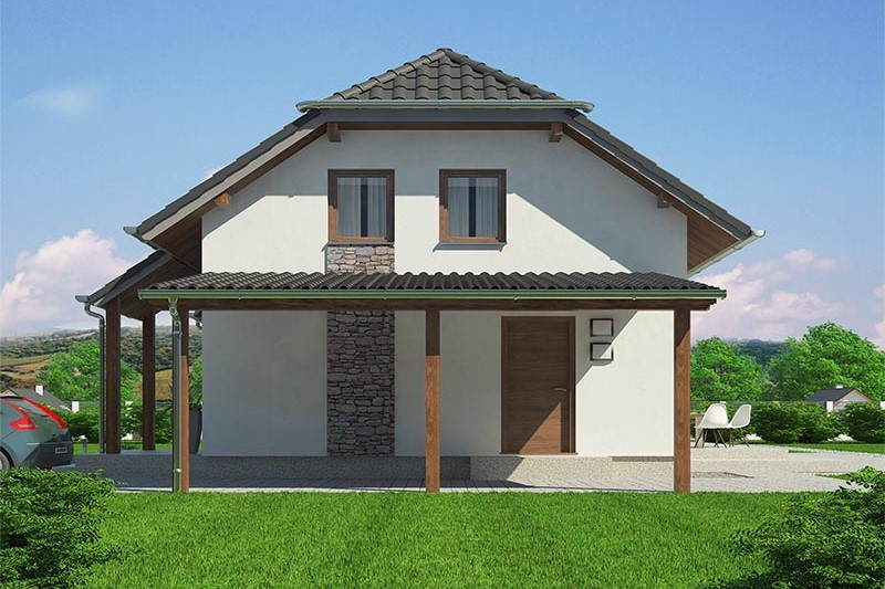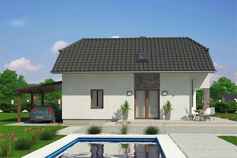Jednoduchá architektura zapadne do jakékoliv zástavby. Předpokládá se orientace hlavního hřebene domu ve směru severozápad–jihovýchod. Dům poskytne pohodlné a praktické bydlení čtyř- až pětičlenné rodině, s nízkými provozními náklady. Má účelně využitou dispozici, lze přistavět garáž s pultovou střechou nebo přístřešek pro auto.