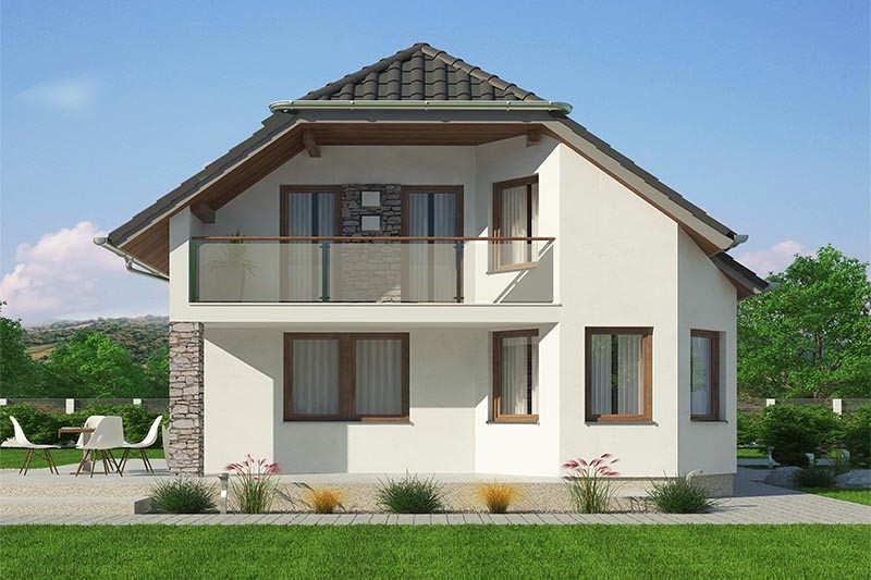 Díky možnosti zvolit různý tvar střechy dům dobře zapadne do městského i venkovského prostředí. Dispozice nabízí nadstandardní komfort pro až pětičlennou rodinu – velké pokoje a pohodlné zázemí včetně potřebného úložného prostoru.