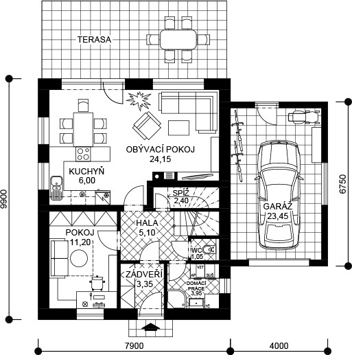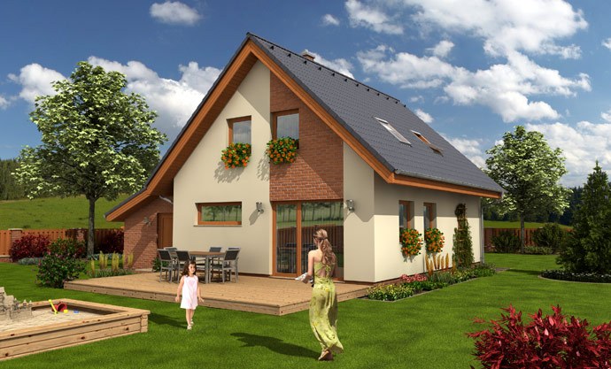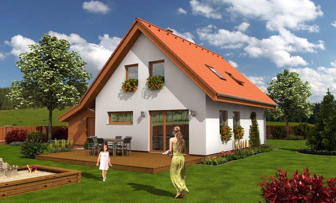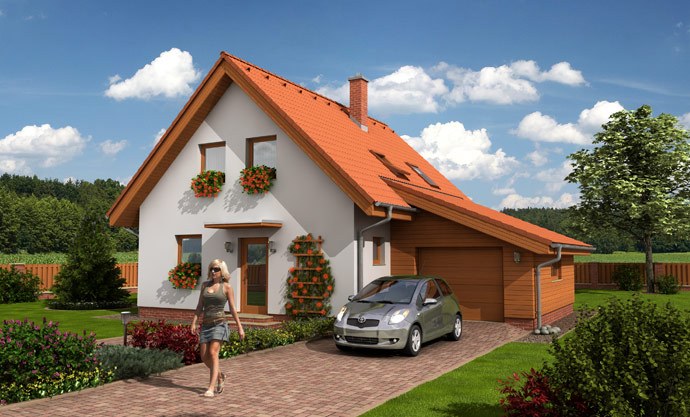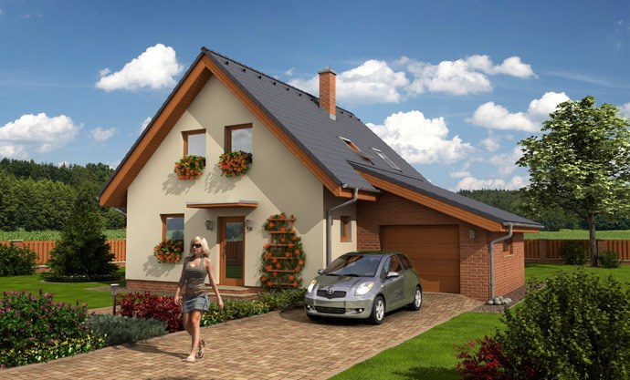 Jednoduchý dům tradičního vzhledu se bude hodit především na venkov. Na malé zastavěné ploše nabídne praktické bydlení pro čtyřčlennou... rodinu, s účelnou dispozicí a nízkými provozními náklady. V návrhu je zahrnuta i přístavba garáže – parkovacího stání.
