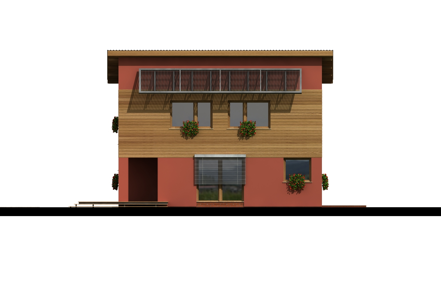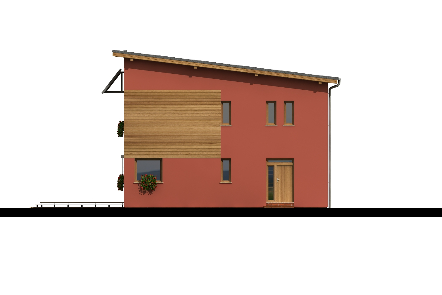 Dům jednoduchého tvaru s pultovou střechou je určen především do města, pro pohodlné bydlení čtyřčlenné rodiny. Má k dispozici pohodlné... zázemí, včetně šatny, technické místnosti a spíže. Příjemné posezení nabízí krytá rohová terasa. Horní podlaží má na rozdíl od běžného podkroví vysoké stropy a velké dětské pokoje.