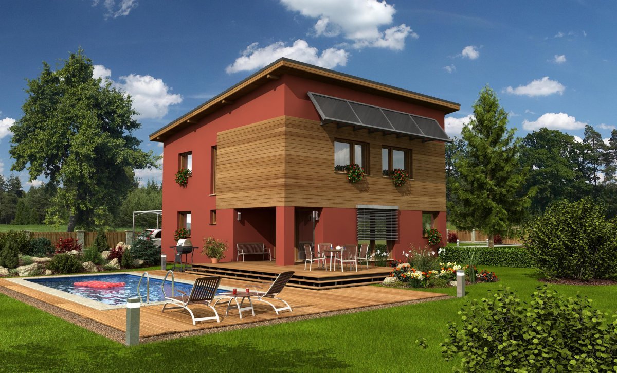 Stavba inspirovaná tradičním typem domu se sedlovou střechou se bude nejlépe hodit na venkov nebo do malého města. Je určena pro čtyř až pětičlennou rodinu a vybavena odpovídajícím zázemím. Nejhezčí částí domu je atypicky členěný společný obývací prostor, v podkroví jsou nadstandardně velké dětské pokoje. Výhodou je i přistavěná garáž s využitelnou půdou.