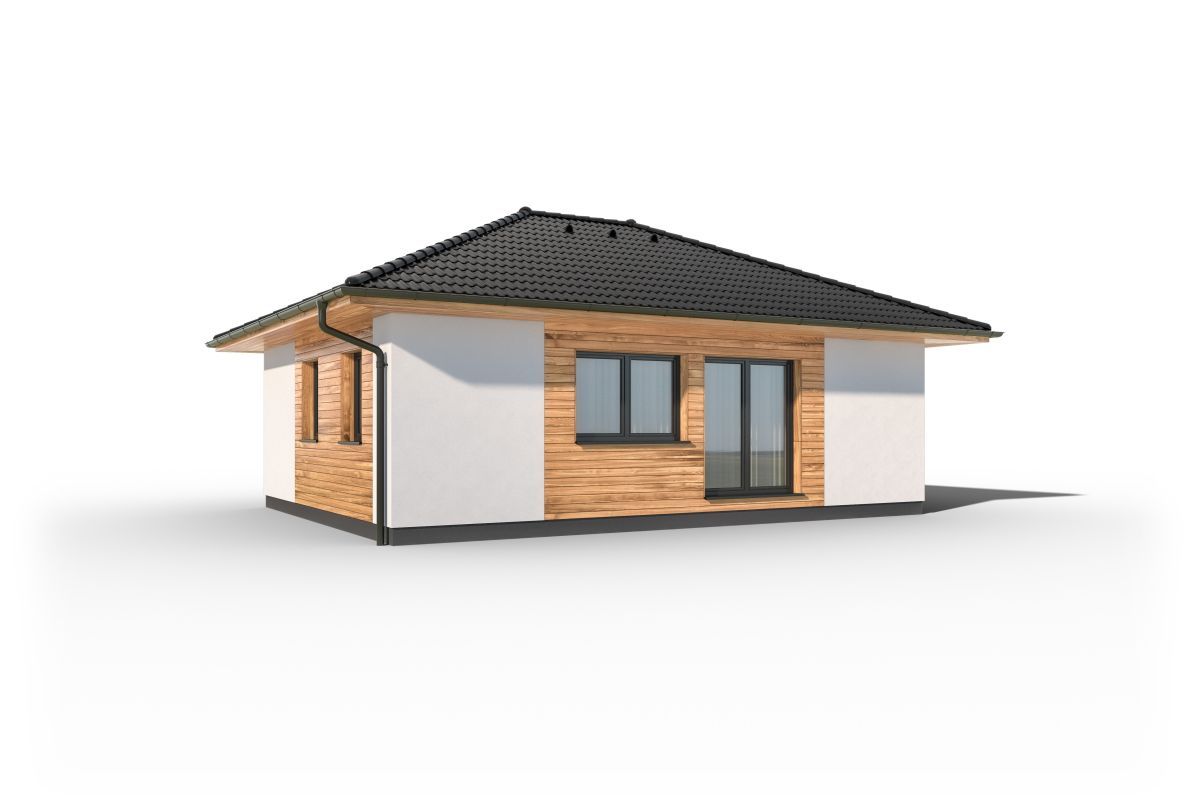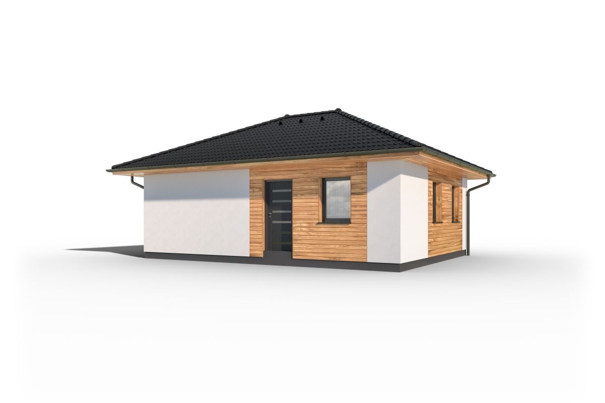 Bungalov s velmi malou zastavěnou plochou je určen pro úsporné bydlení mladé či starší dvojice. Uspokojí požadavky na současný obytný komfort při nízkých pořizovacích i provozních nákladech. Hodí se do jakéhokoliv typu zástavby.