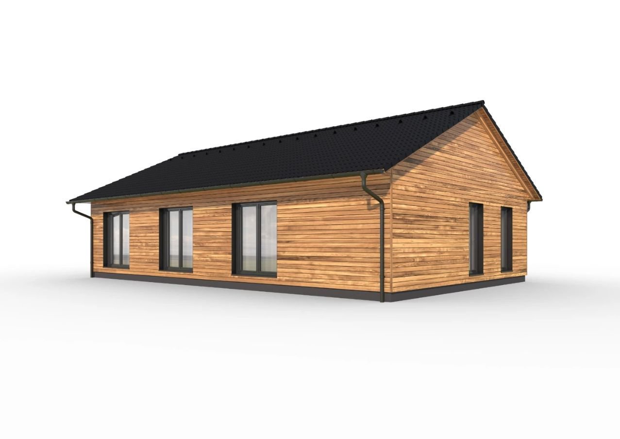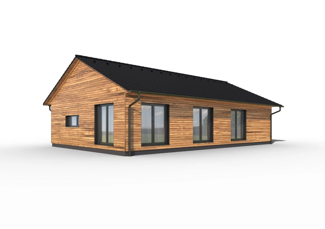 Bungalov se sedlovou střechou a moderním designem se bude skvěle vyjímat na venkově nebo v přírodě. Tříčlenná rodina v něm najde komfortn... bydlení s veškerým zázemím. Dispozice je dobře promyšlená a poskytuje i dostatek úložného prostoru. Bezbariérové řešení umožňuje z každého pokoje vyjít přímo na zahradu.