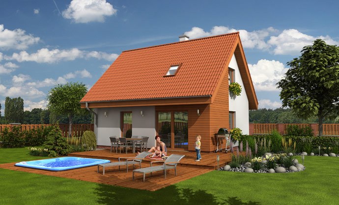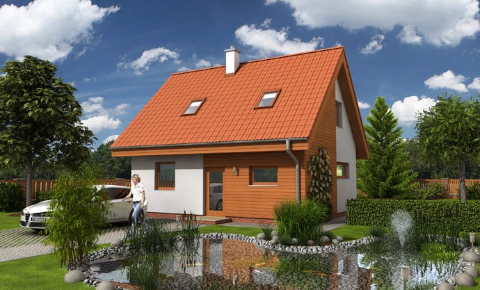 Půvabný malý domek tradičního tvaru se bude dobře vyjímat hlavně na venkově. Je navržen pro praktické a úsporné bydlení až pětičlenné... rodiny. Vzhledem k malé zastavěné ploše postačí malý pozemek.
