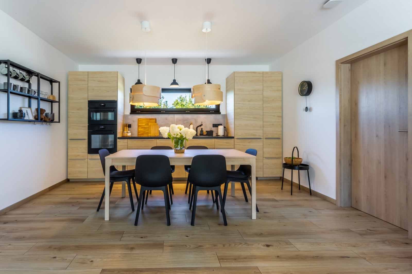 Elegantní dům poskytuje komfortní a udržitelné bydlení v harmonii s okolní krajinou. Má pohodlnou bezbariérovou dispozici pro tříčlennou rodinu, prosvětlený interiér a příjemné vyšší stropy. Citlivě kombinuje moderní design, přírodní materiály a šetrnost k životnímu prostředí.