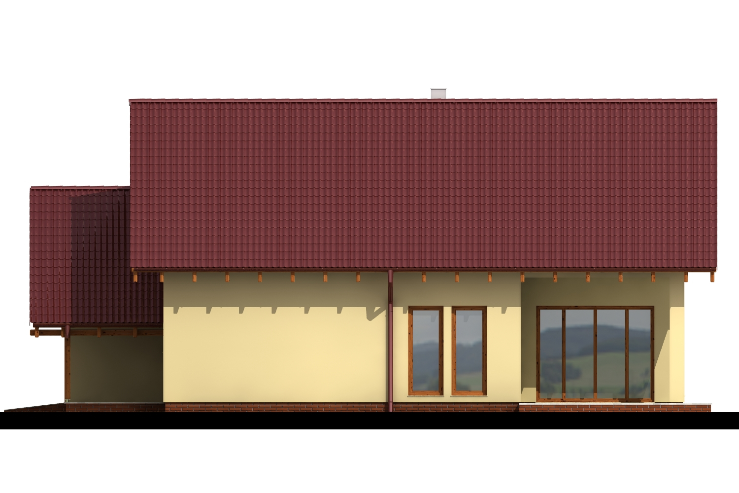 Tento dům půdorysného tvaru L s valbovou střechou je určen pro pohodlné bydlení rodiny se dvěma až třemi dětmi, případně pro třígenerační bydlení. Má oblíbenou krytou rohovou terasu, obývací pokoj s oddělenou kuchyní, prostornou halu a veškeré potřebné zázemí, především pohodlné koupelny, úložné prostory a integrovanou garáž.